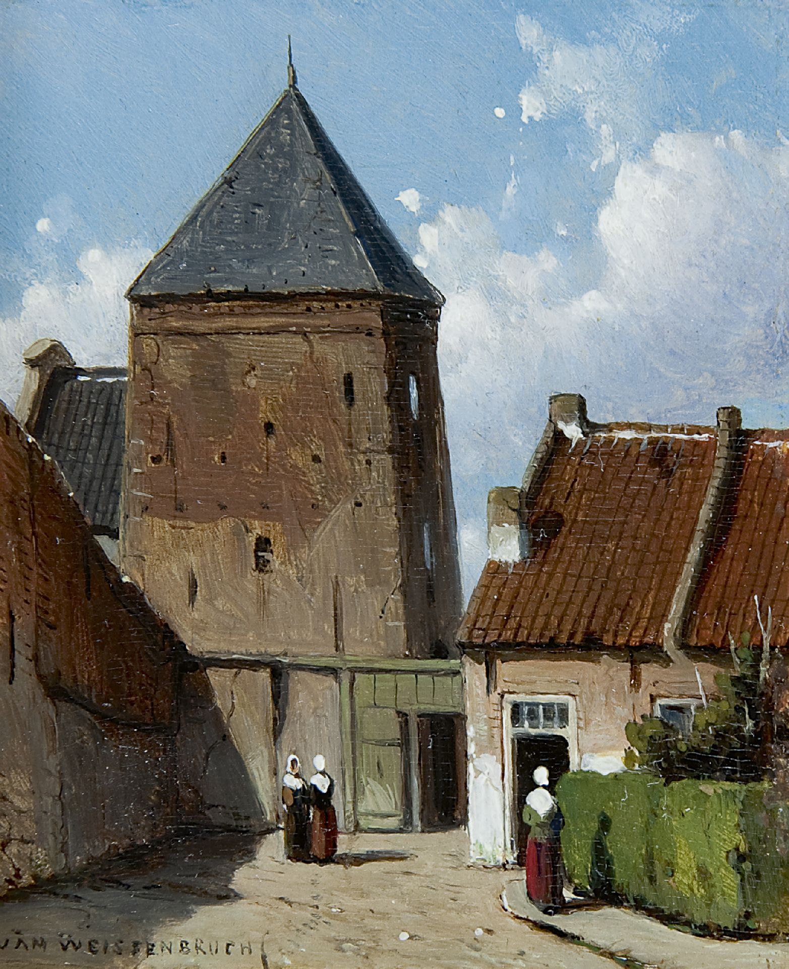 Jan Weissenbruch was in de jaren '50 en '60 een van de belangrijkste exponenten van het realisme in de Nederlandse landschapsschilderkunst. Hij kreeg les aan de Haagse Tekenacademie van o.a. A. Waldorp en S. Verveer, en legde zich daarna in het bijzonder toe op het schilderen van stadsgezichten. Aanvankelijk vooral van de dorpen en steden rond Den Haag, daarna van de stadjes langs de Lek, Rijn en Waal. In 1848 maakte hij schetsen in Culemborg. Vermoedelijk reisde hij er naartoe met boten die geregeld diensten onderhielden via vaste veerplaatsen. In de bewaarde schetsboeken van deze reis zijn schetsen te vinden van achtereenvolgens Wageningen, Rhenen, Wijk bij Duurstede, Beusichem en Culemborg.
