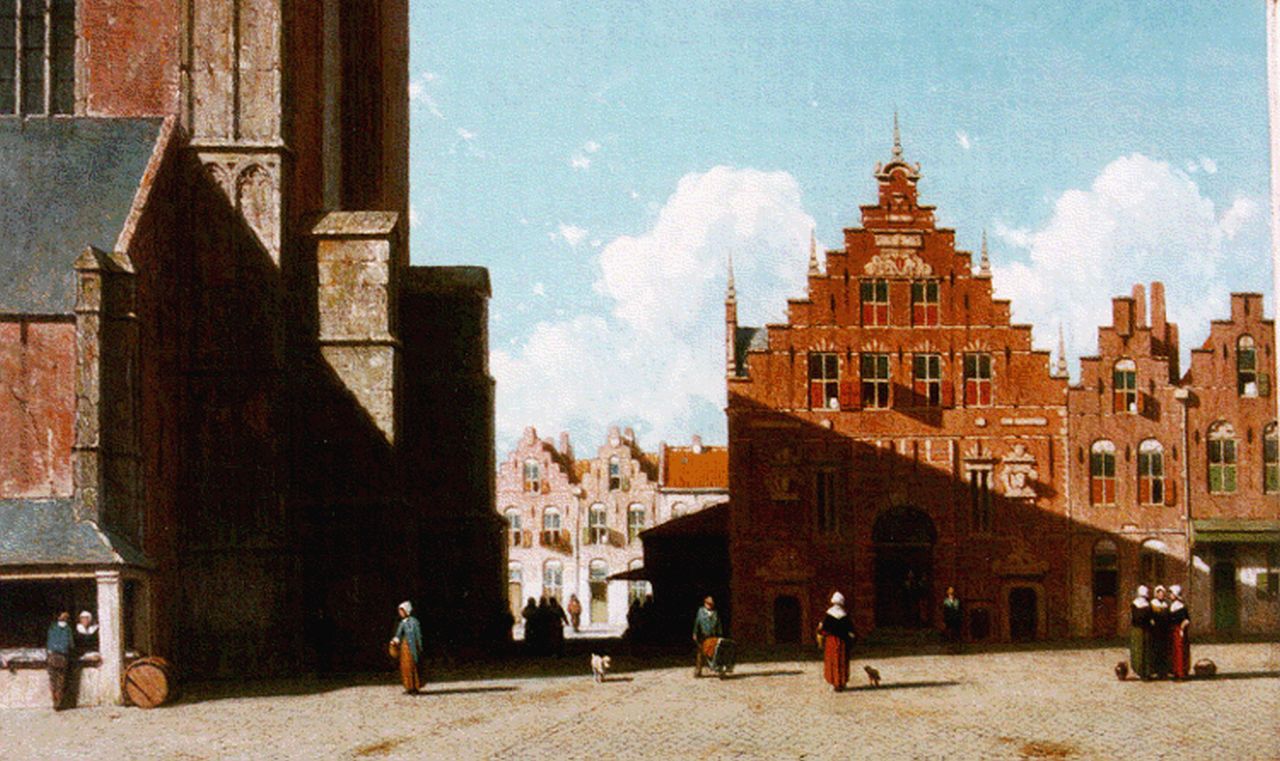 Jan Weissenbruch kunstwerk • schilderij • voorheen te koop Gezicht op de Grote markt te Haarlem