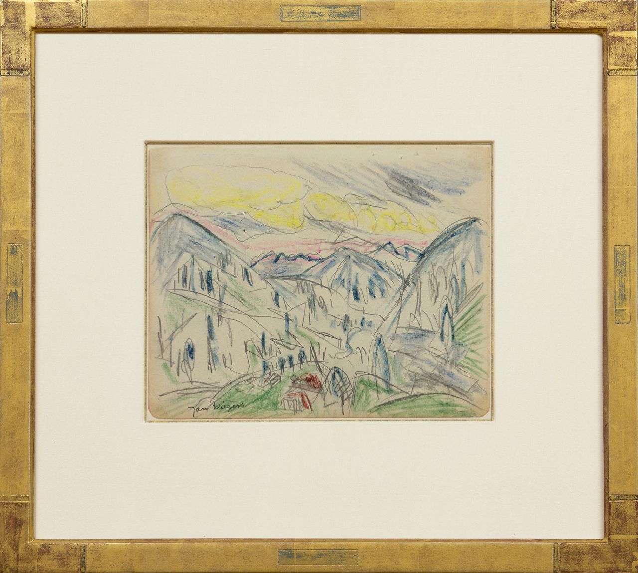 Jan Wiegers kunstwerk • aquarel • tekening • te koop Zwitsers berglandschap; verso: Portret van een jongen