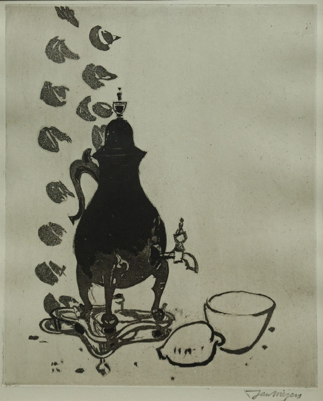 Jan Wiegers kunstwerk • grafiek • voorheen te koop Stilleven met kraantjeskan