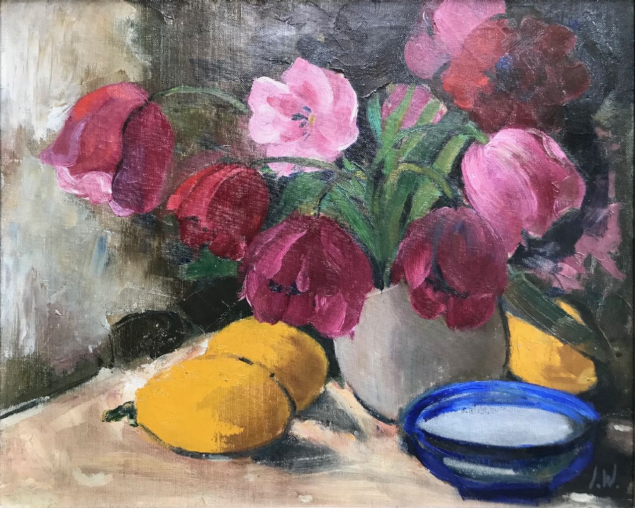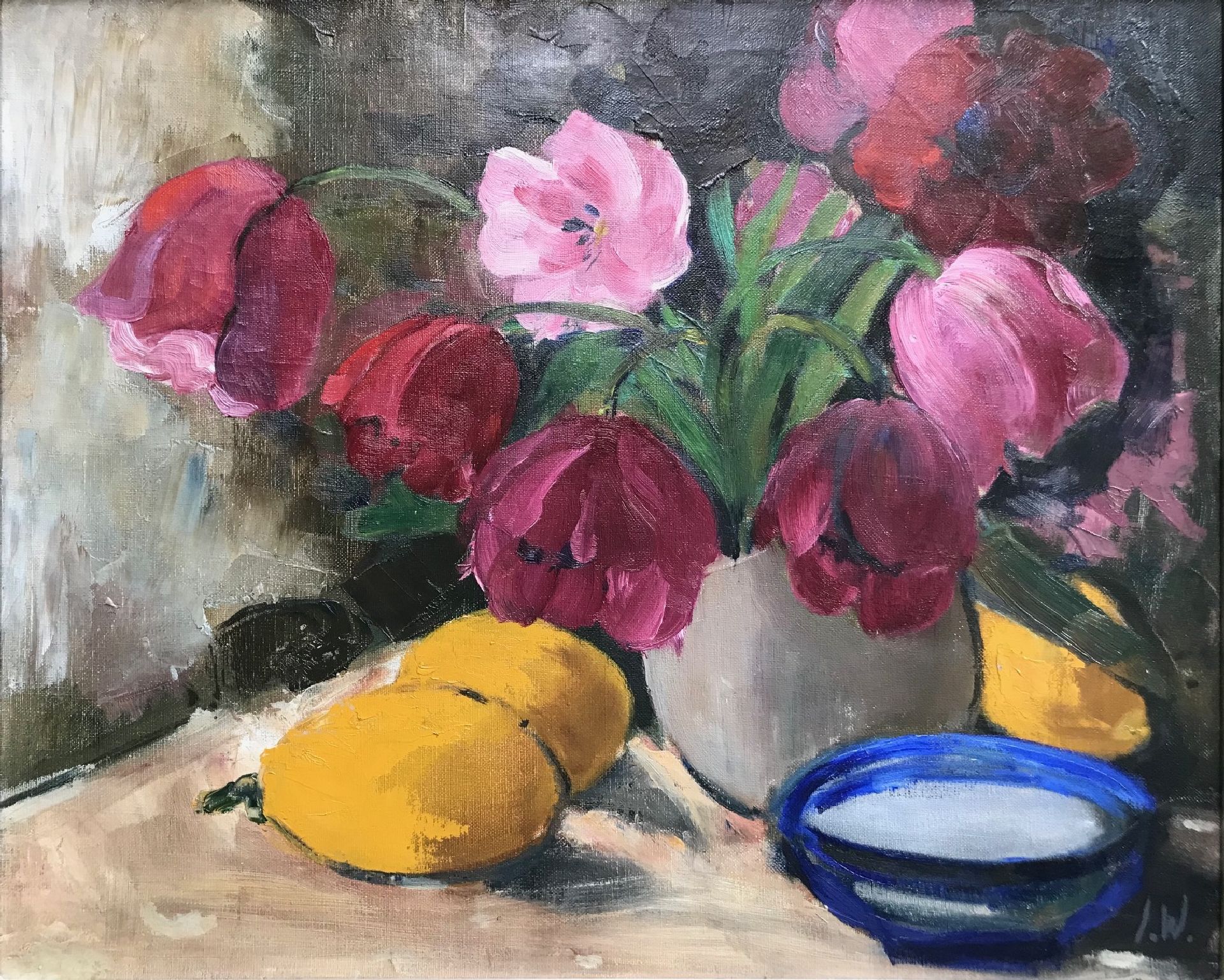 Jan Wiegers kunstwerk • schilderij • voorheen te koop Stilleven met tulpen
