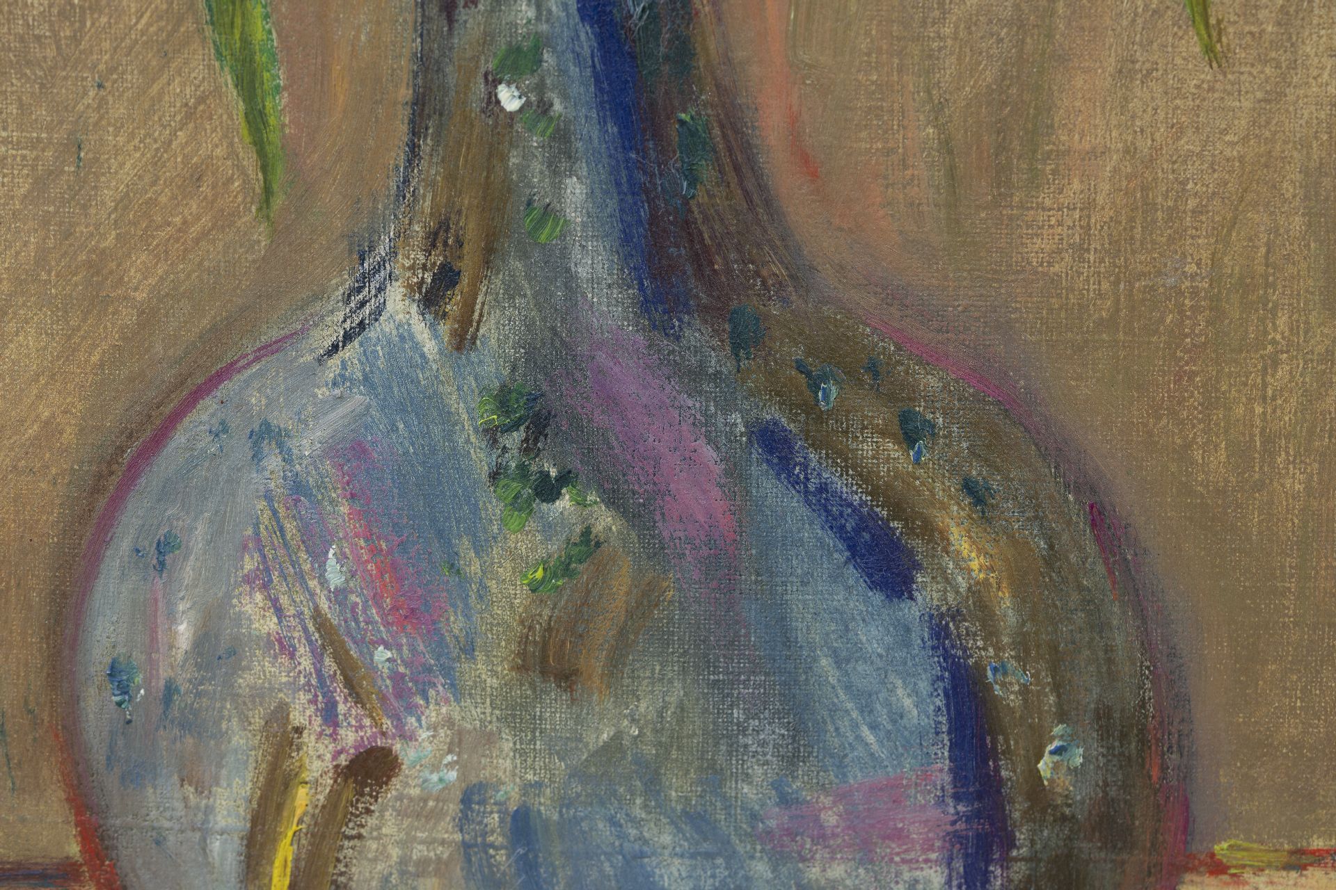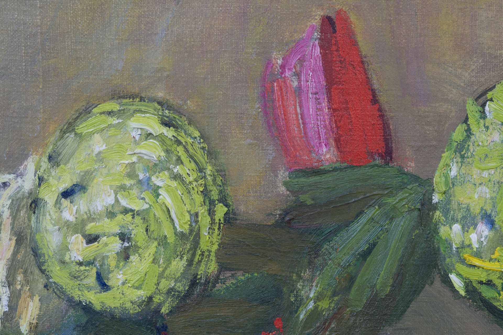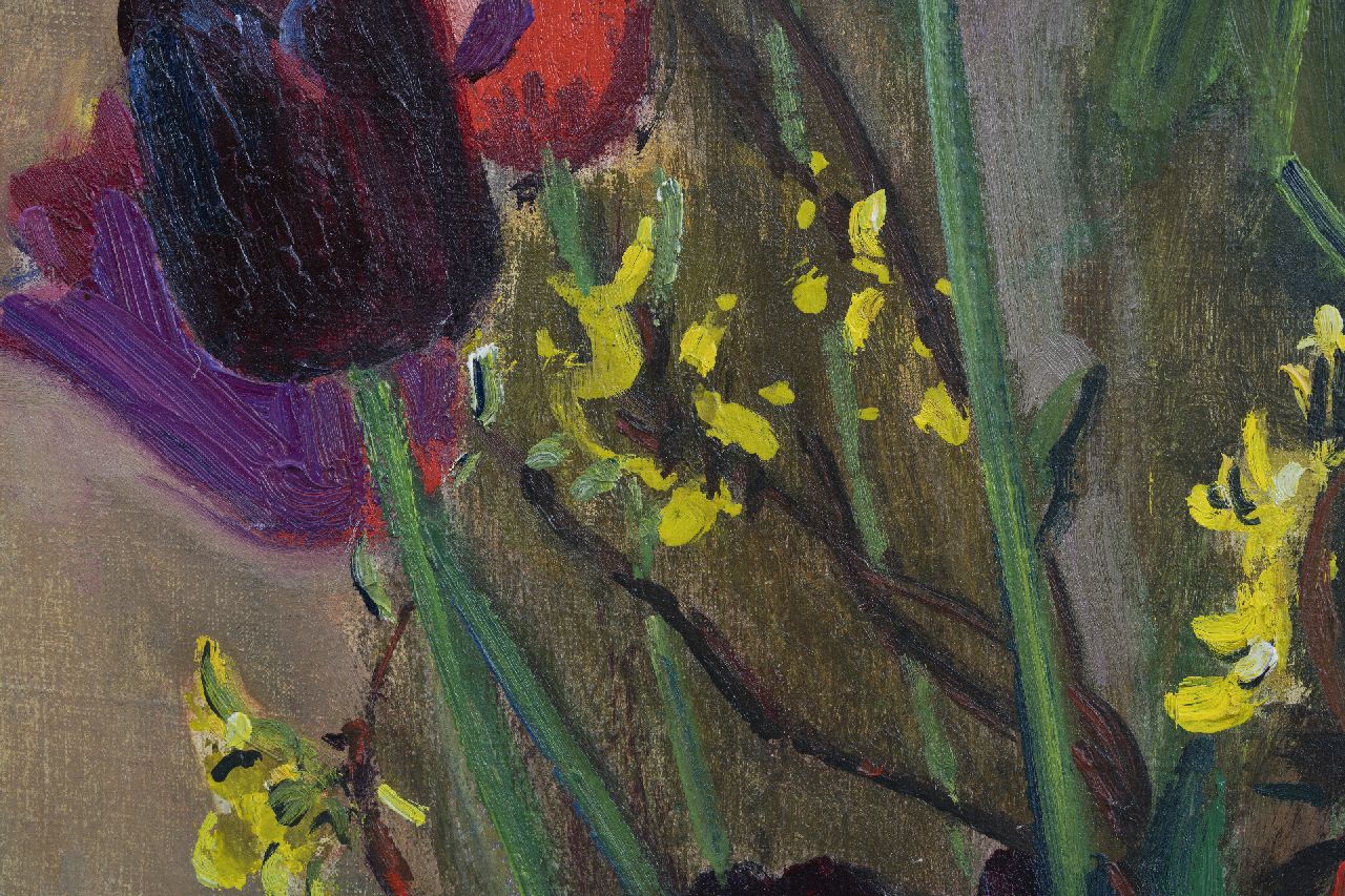 Jan Wiegers kunstwerk • schilderij • voorheen te koop Voorjaarsboeket met tulpen en brem