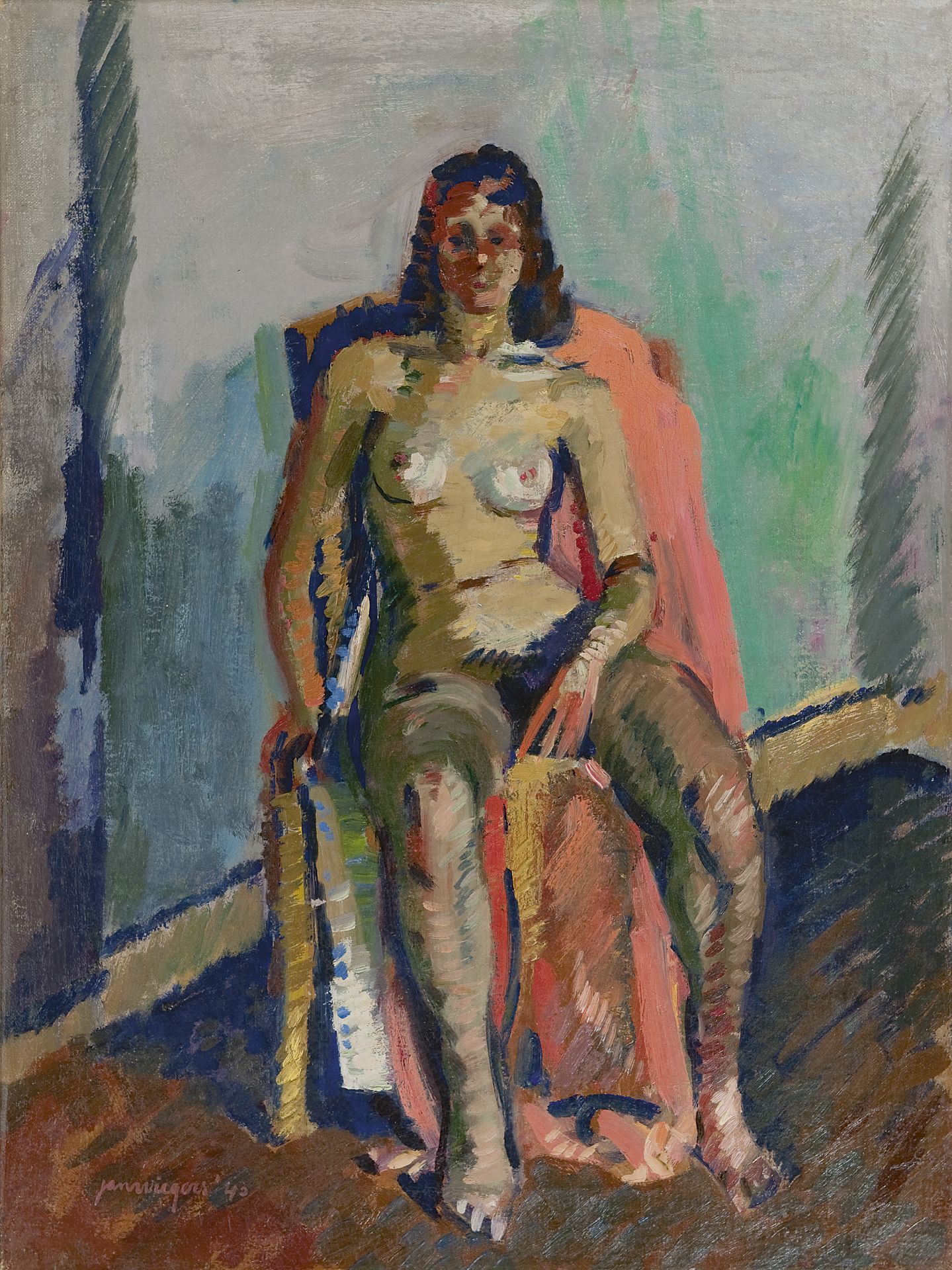 Jan Wiegers kunstwerk • schilderij • voorheen te koop Zittend naakt