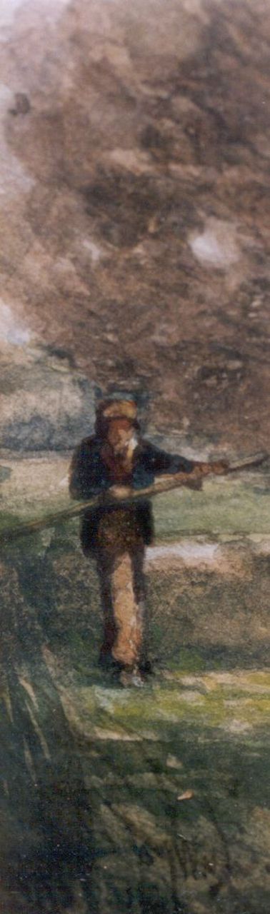 Jan Willem van Borselen kunstwerk • aquarel • tekening • voorheen te koop Figuur in een landschap