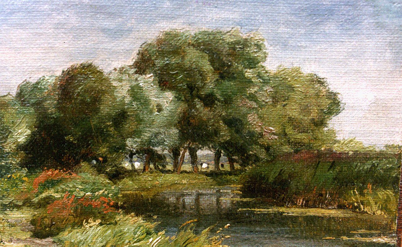 Jan Willem van Borselen kunstwerk • schilderij • voorheen te koop Boomrijk rivierlandschap