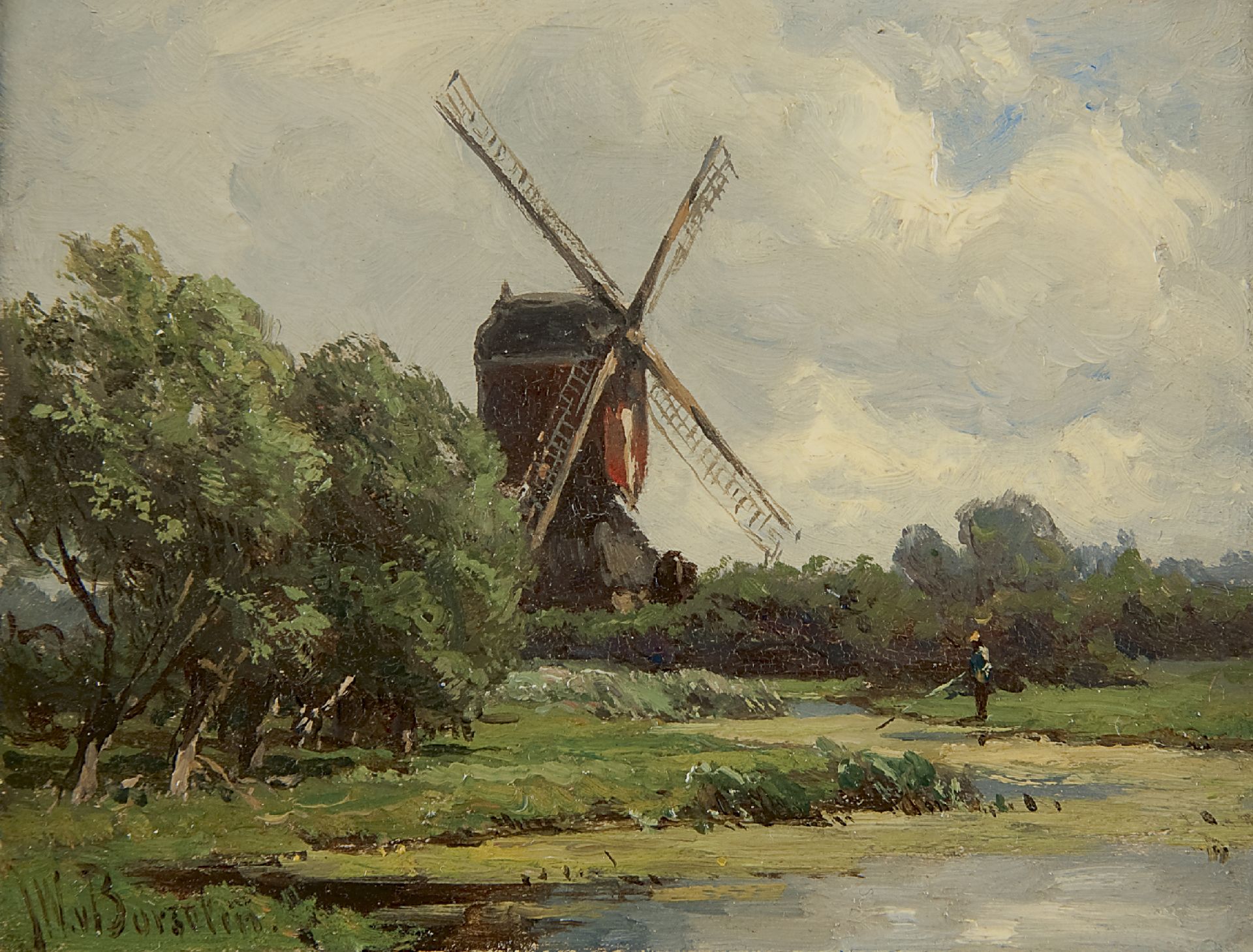 Jan Willem van Borselen kunstwerk • schilderij • voorheen te koop De Bovenmolen aan het oosteinde van de polder Stolwijk (bij Gouda)