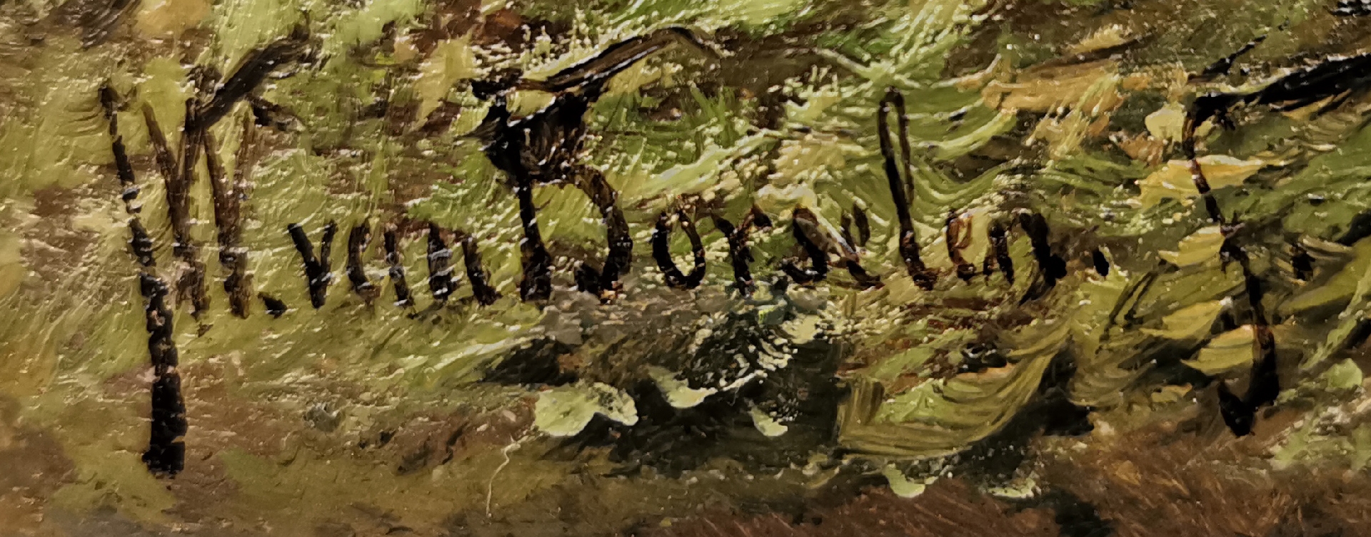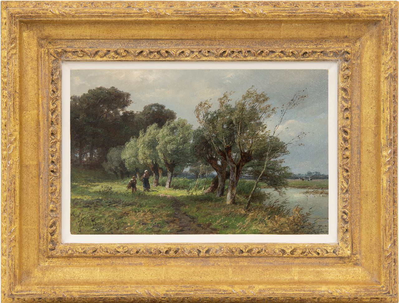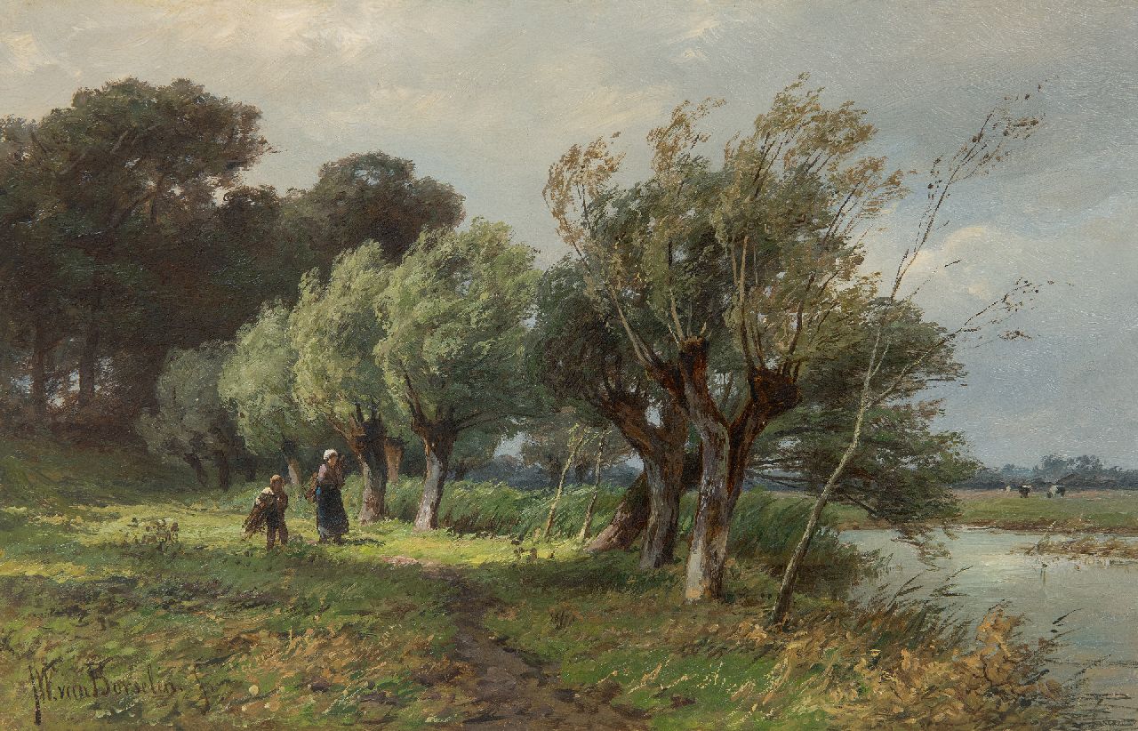 Jan Willem van Borselen kunstwerk • schilderij • voorheen te koop Hout sprokkelen op het pad langs de vaart