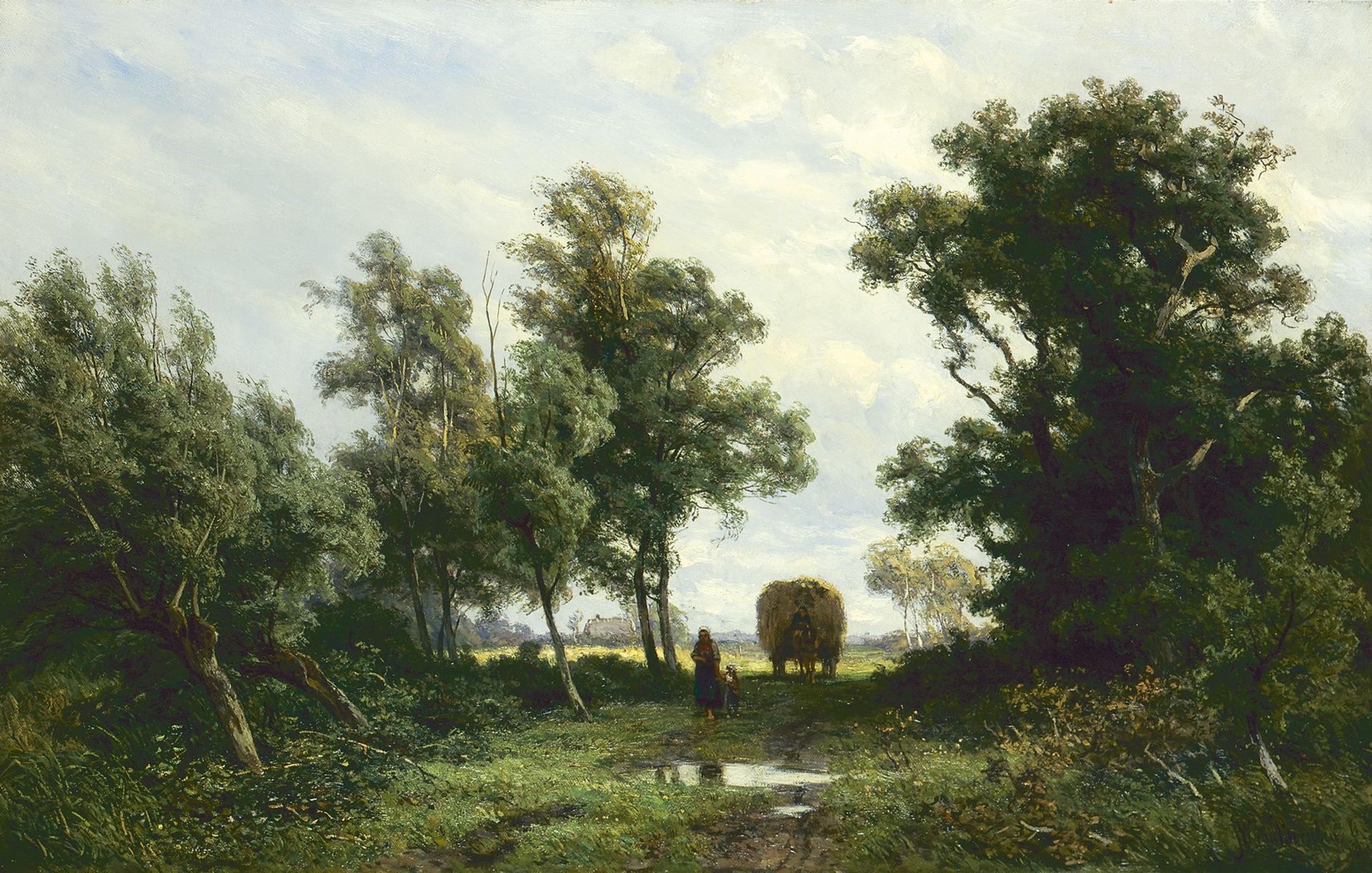 Jan Willem van Borselen kunstwerk • schilderij • voorheen te koop Huiswaarts na het hooien