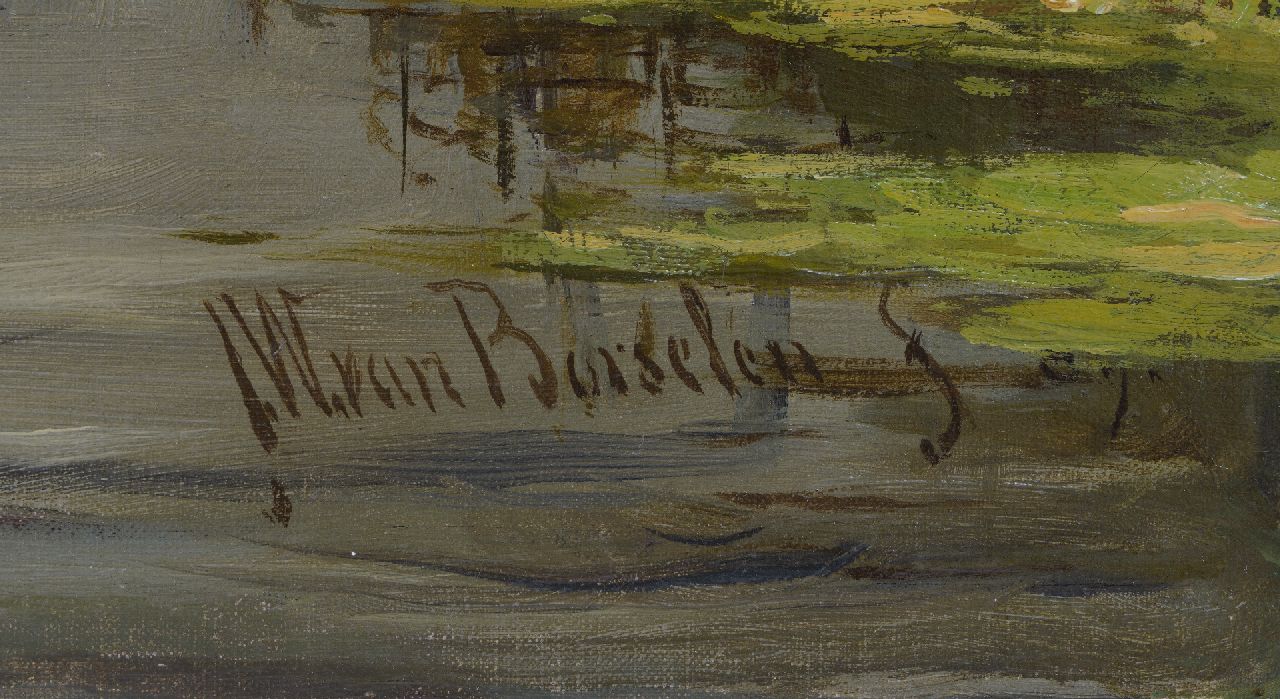 Jan Willem van Borselen schilderde vooral landschappen, waarvoor hij inspiratie opdeed in de waterrijke omstreken van Den Haag: Gouda, Zoetermeer en Stompwijk. Vooral de wijze waarop hij riet en door wind bewogen geboomte en opwolkend stof kon weergeven oogstte veel bewondering. Koning Willem III en zijn (tweede) echtgenote koningin Emma waren liefhebbers van het werk van de schilder en gaven hem verschillende opdrachten. Ook nodigden ze hem uit op Paleis Het Loo, hun zomerresidentie. Van Borselen maakte ook schetstochten rond Apeldoorn, waar hij ideeën opdeed voor zijn schilderijen. Tijdens zijn wandelingen vergezelde de koning hem regelmatig. De schilder vertelde later dat hij nog nooit zo gezellig buiten had gewerkt.