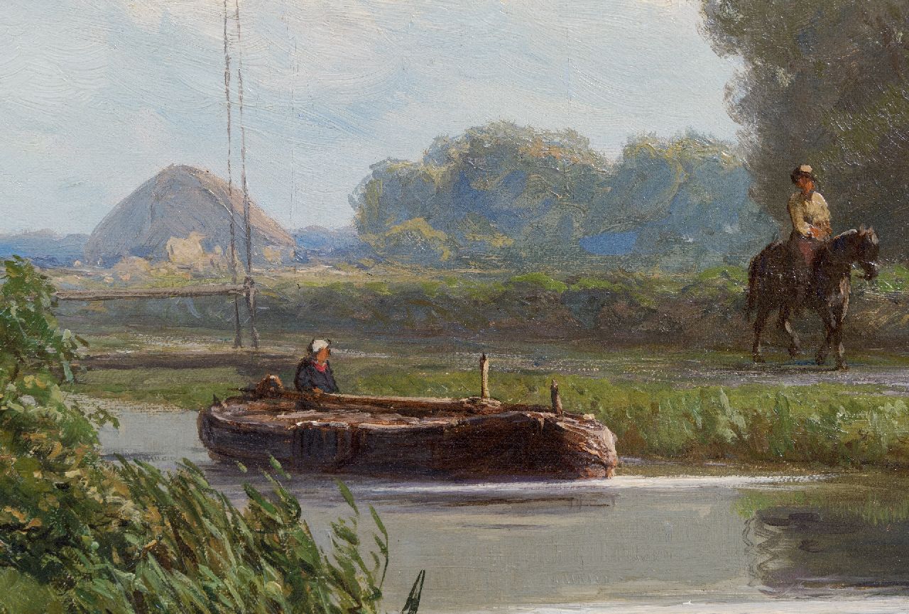 Jan Willem van Borselen kunstwerk • schilderij • te koop Slepers met vrachtschuit in een polderlandschap