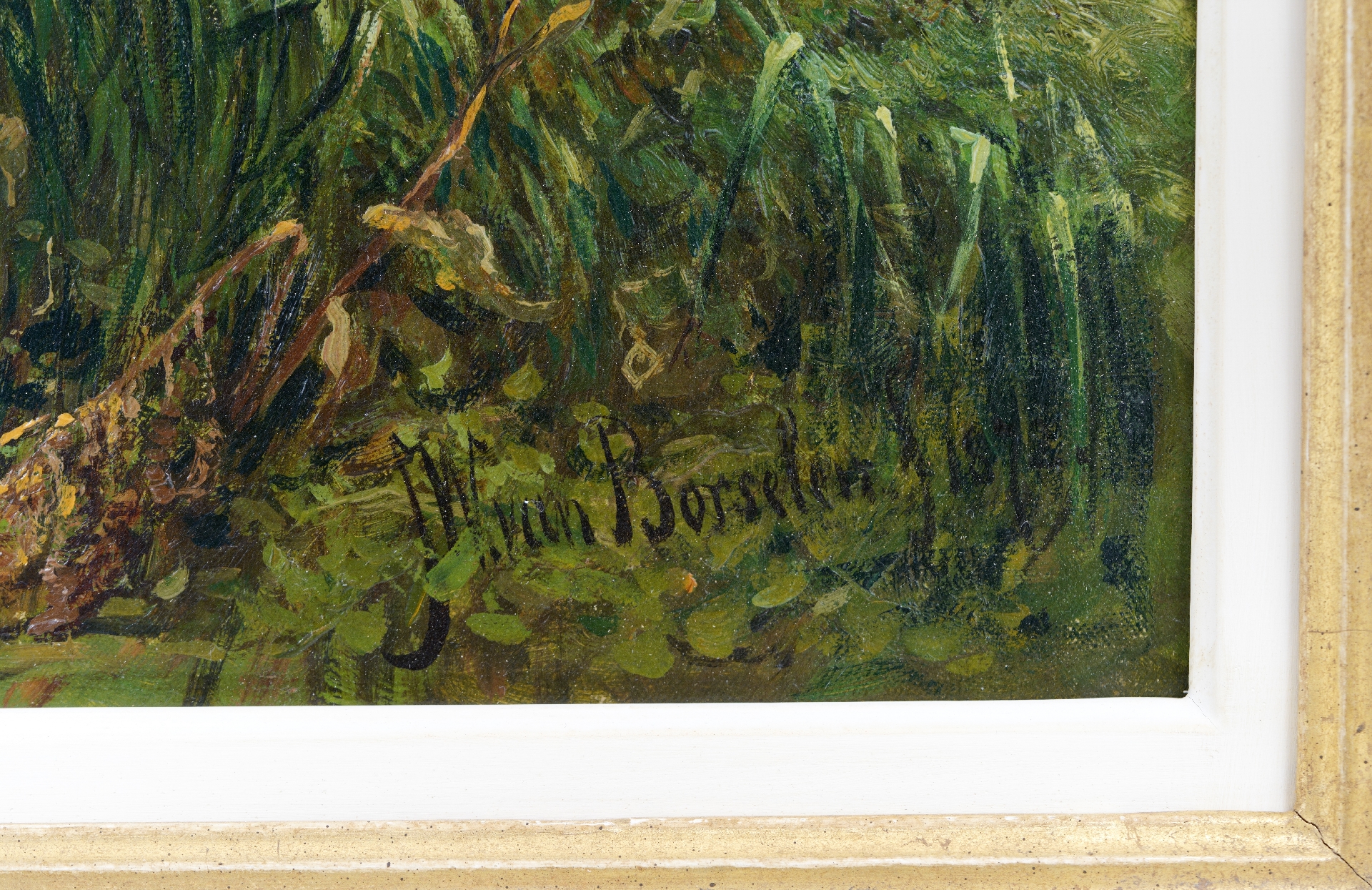 Jan Willem van Borselen schilderde vooral landschappen, waarvoor hij inspiratie opdeed in de waterrijke omstreken van Den Haag: Gouda, Zoetermeer en Stompwijk. Vooral de wijze waarop hij riet en door wind bewogen geboomte en opwolkend stof kon weergeven oogstte veel bewondering. Koning Willem III en zijn (tweede) echtgenote koningin Emma waren liefhebbers van het werk van de schilder en gaven hem verschillende opdrachten. Ook nodigden ze hem uit op Paleis Het Loo, hun zomerresidentie. Van Borselen maakte ook schetstochten rond Apeldoorn, waar hij ideeën opdeed voor zijn schilderijen. Tijdens zijn wandelingen vergezelde de koning hem regelmatig. De schilder vertelde later dat hij nog nooit zo gezellig buiten had gewerkt.