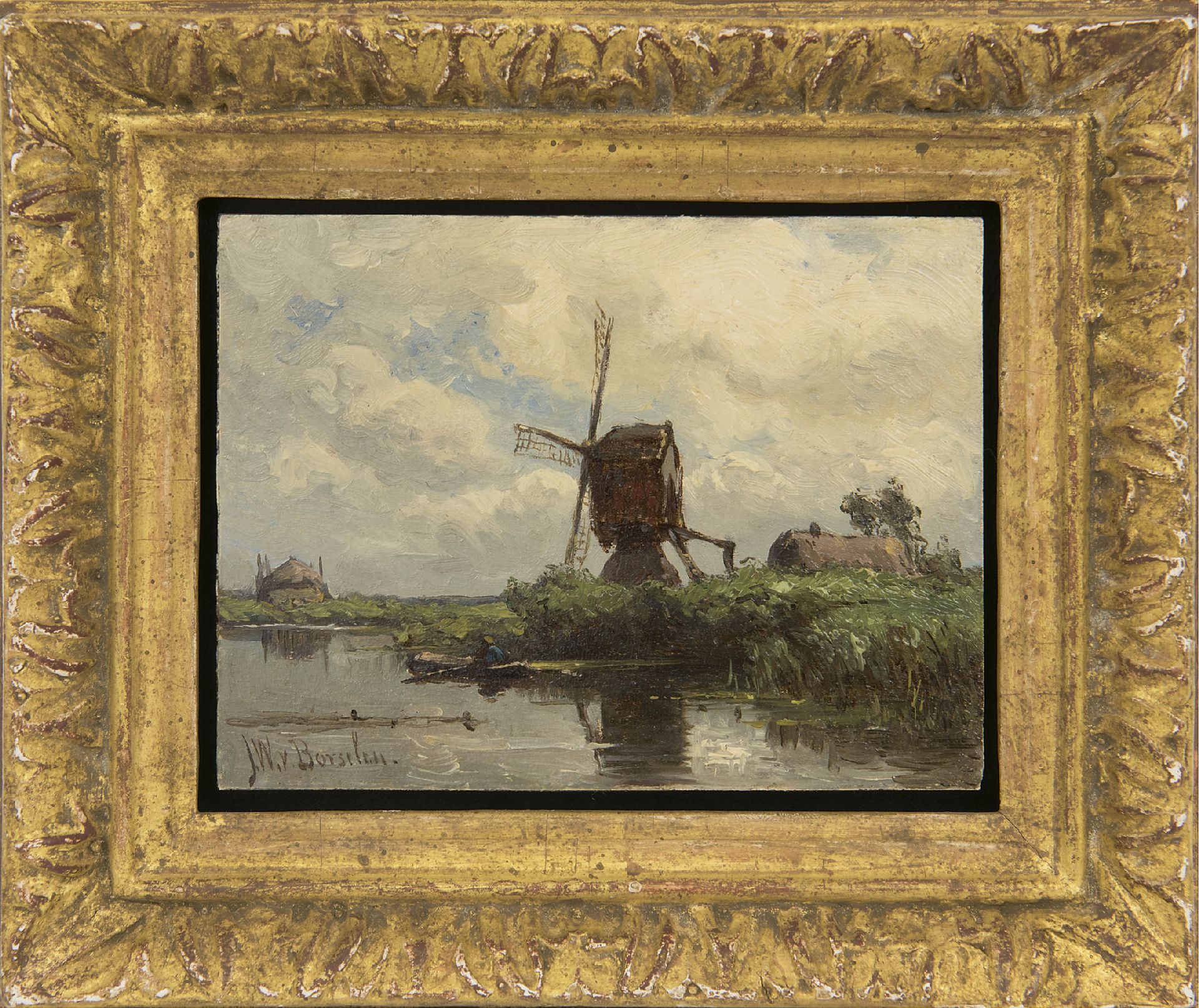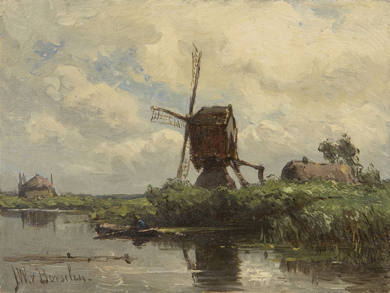 Jan Willem van Borselen kunstwerk • schilderij • voorheen te koop Wipmolen aan het water