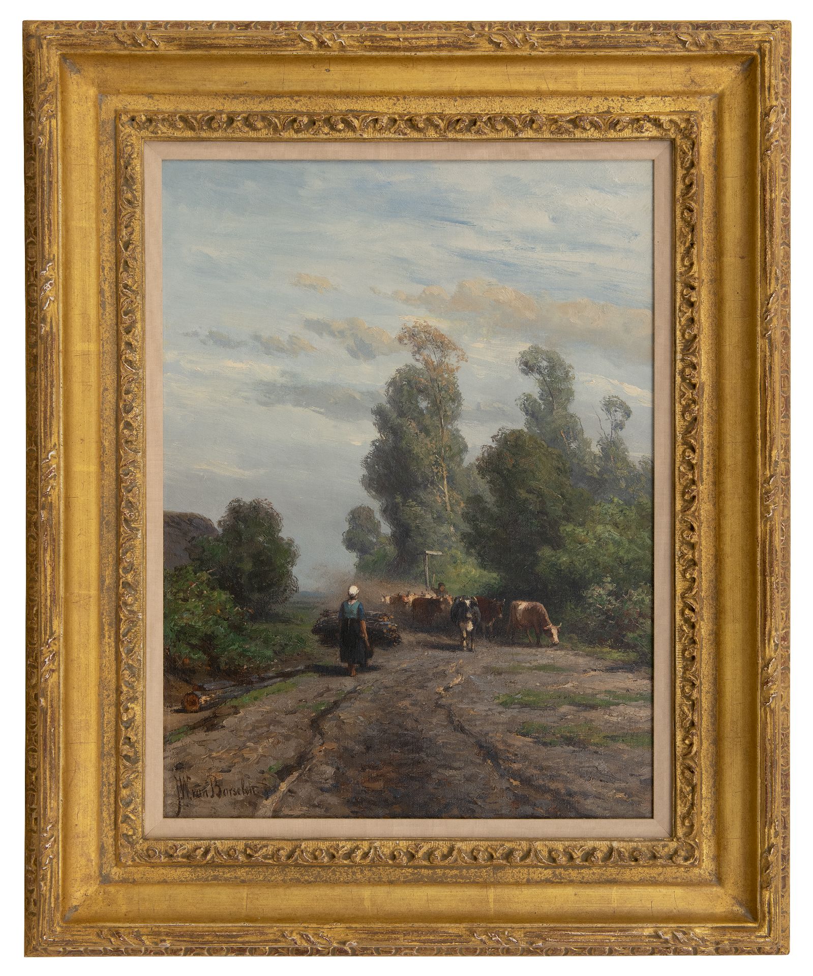 Jan Willem van Borselen kunstwerk • schilderij • voorheen te koop Zomerlandschap met kudde en herder