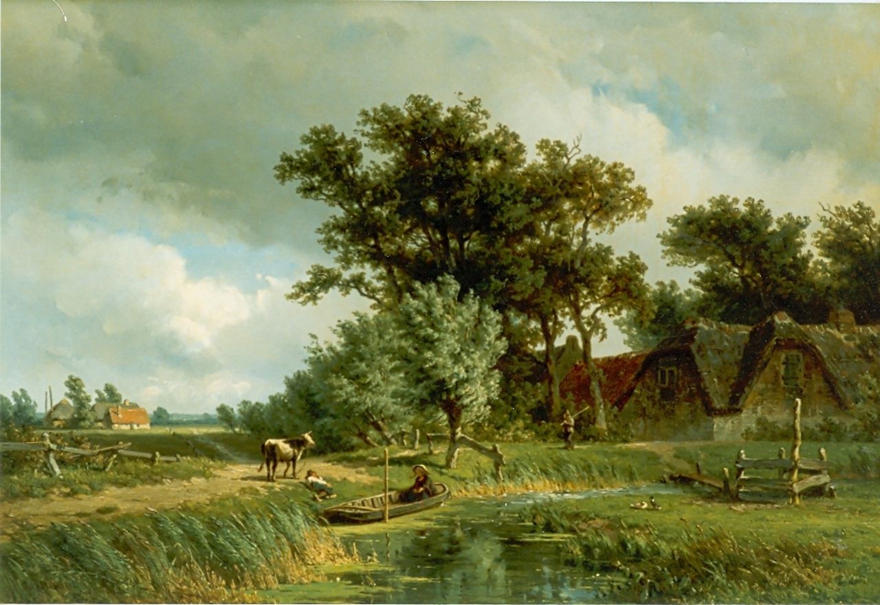 Jan Willem van Borselen kunstwerk • schilderij • voorheen te koop Zomers boerenlandschap