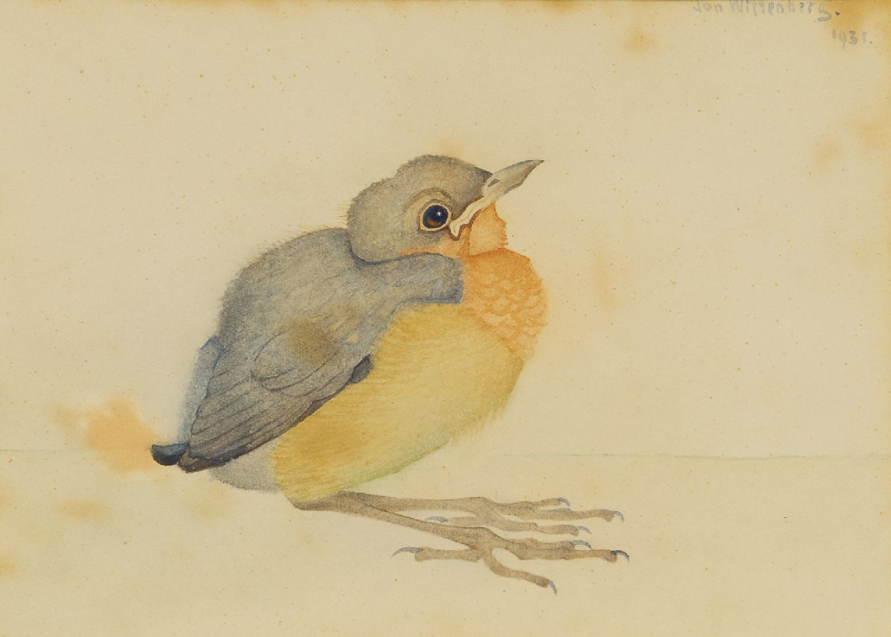 Jan Wittenberg kunstwerk • aquarel • tekening • voorheen te koop Jonge merel