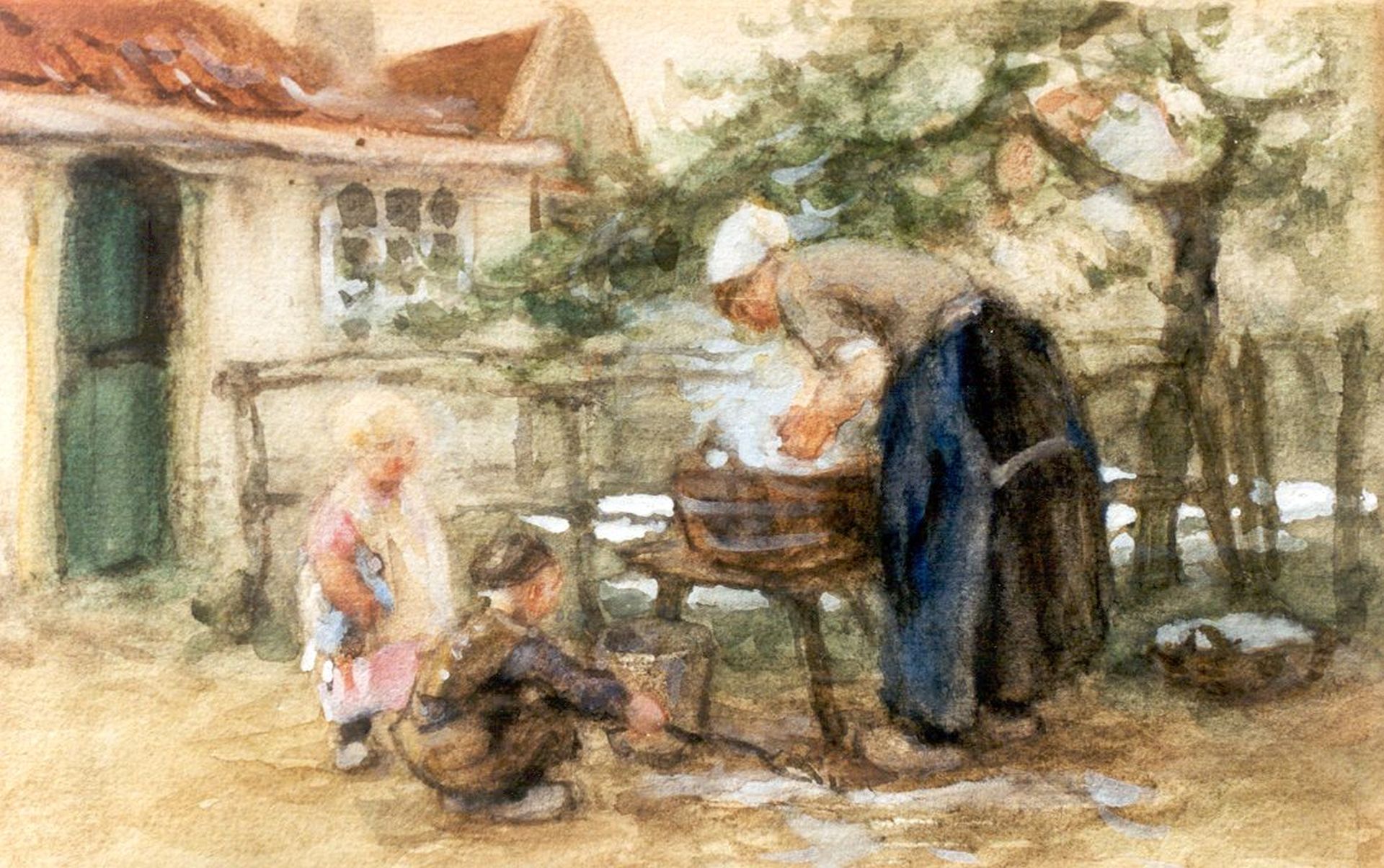 Jan Zoetelief Tromp kunstwerk • aquarel • tekening • voorheen te koop Aan de was