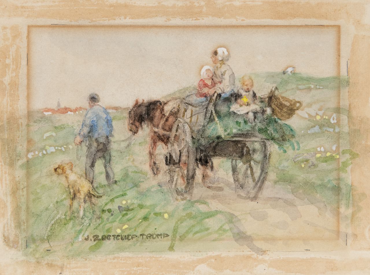 Jan Zoetelief Tromp kunstwerk • aquarel • tekening • te koop Huiswaarts door de duinen
