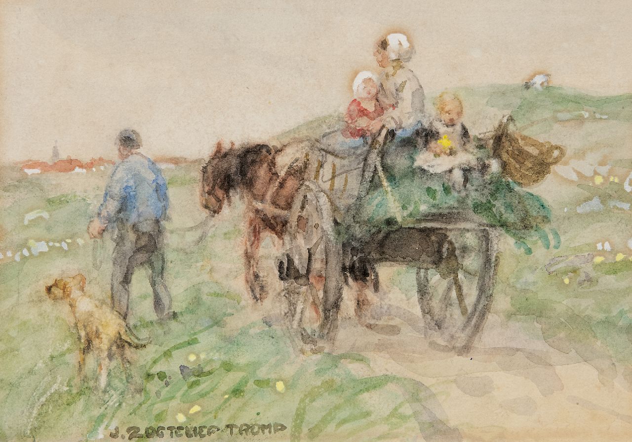 Blaricum en Katwijk waren de twee dorpen waar Jan Zoetelief Tromp het meeste schilderde. In Blaricum vond hij vanaf 1899 het boerenleven, Katwijk 'ontdekte' hij in 1905. Eerst brengt hij er alleen de zomers door met zijn gezin, vanaf 1914 woont hij er permanent. Hij schildert er het leven van de vissersbevolking, maar vooral voorstellingen met kinderen: spelend op het strand, geitjes hoedend of terugkerend uit de duinen. Deze taferelen zijn altijd idyllisch en stralen het familiegeluk uit dat hij vermoedelijk zelf ook kende. Omdat de schilder doof was en enigszins teruggetrokken, nam hij vaak zijn eigen vrouw en kinderen als model.