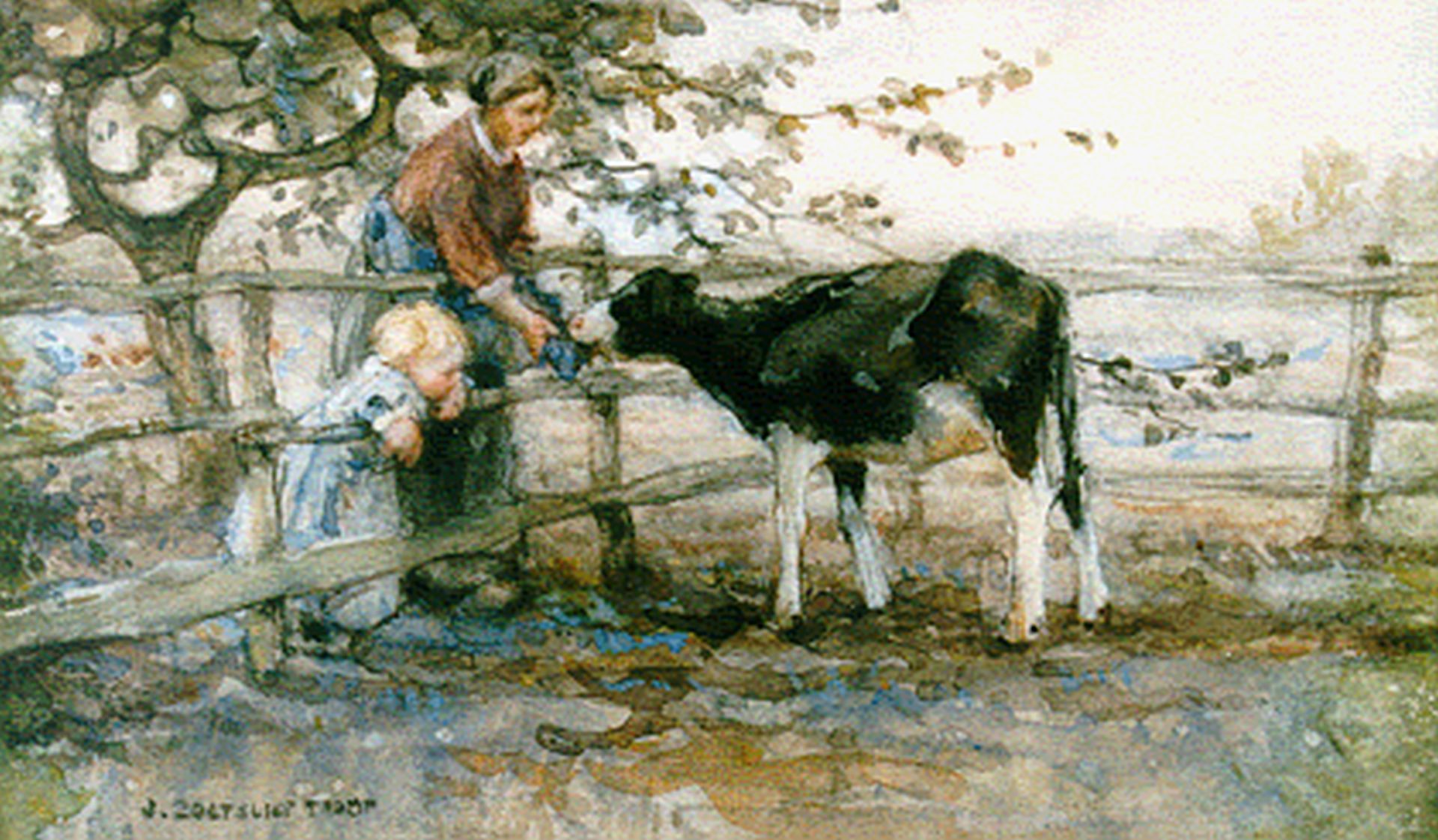 Jan Zoetelief Tromp kunstwerk • aquarel • tekening • voorheen te koop Kalfje voeren