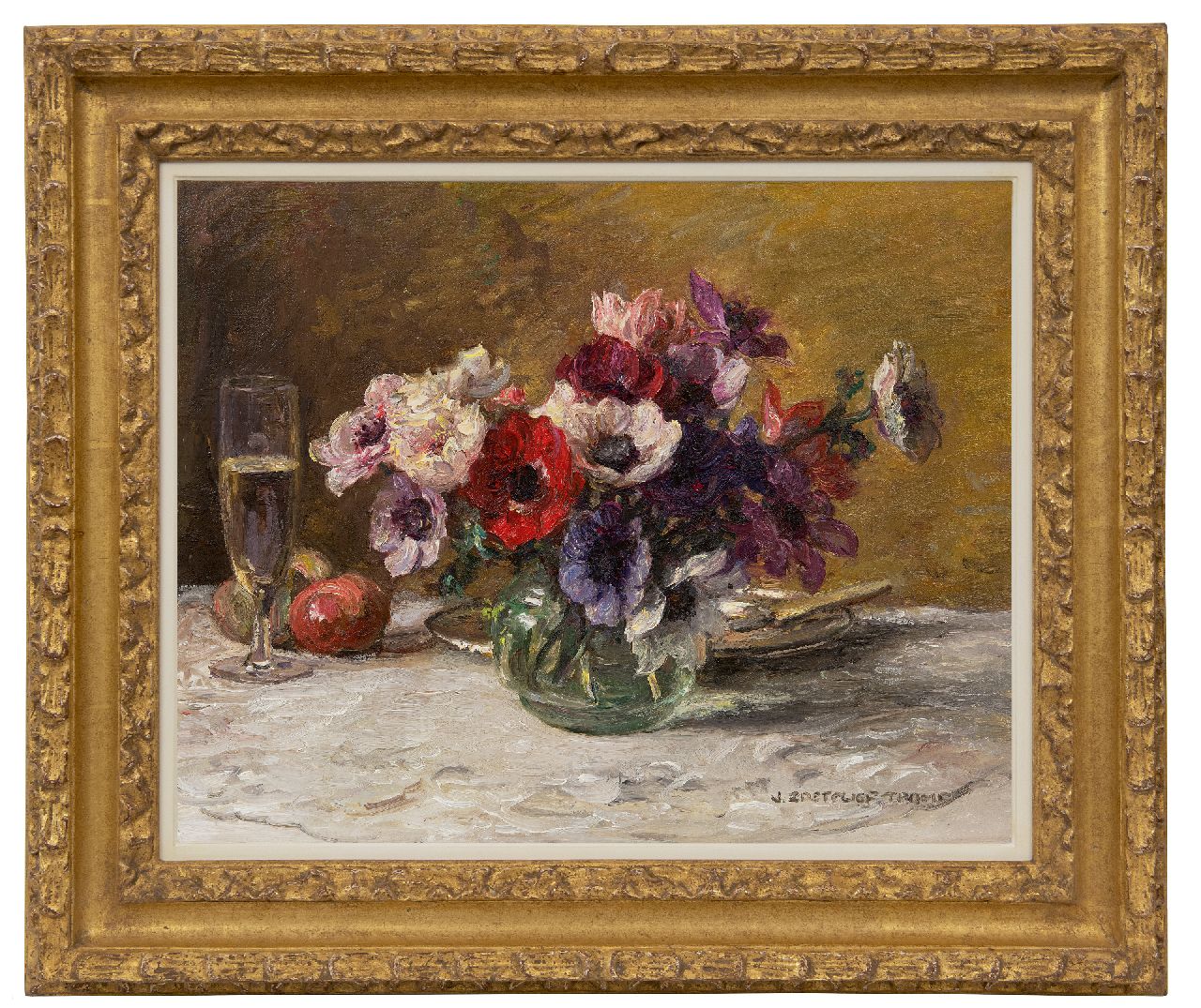 Jan Zoetelief Tromp kunstwerk • schilderij • voorheen te koop Anemonen met champagneglas