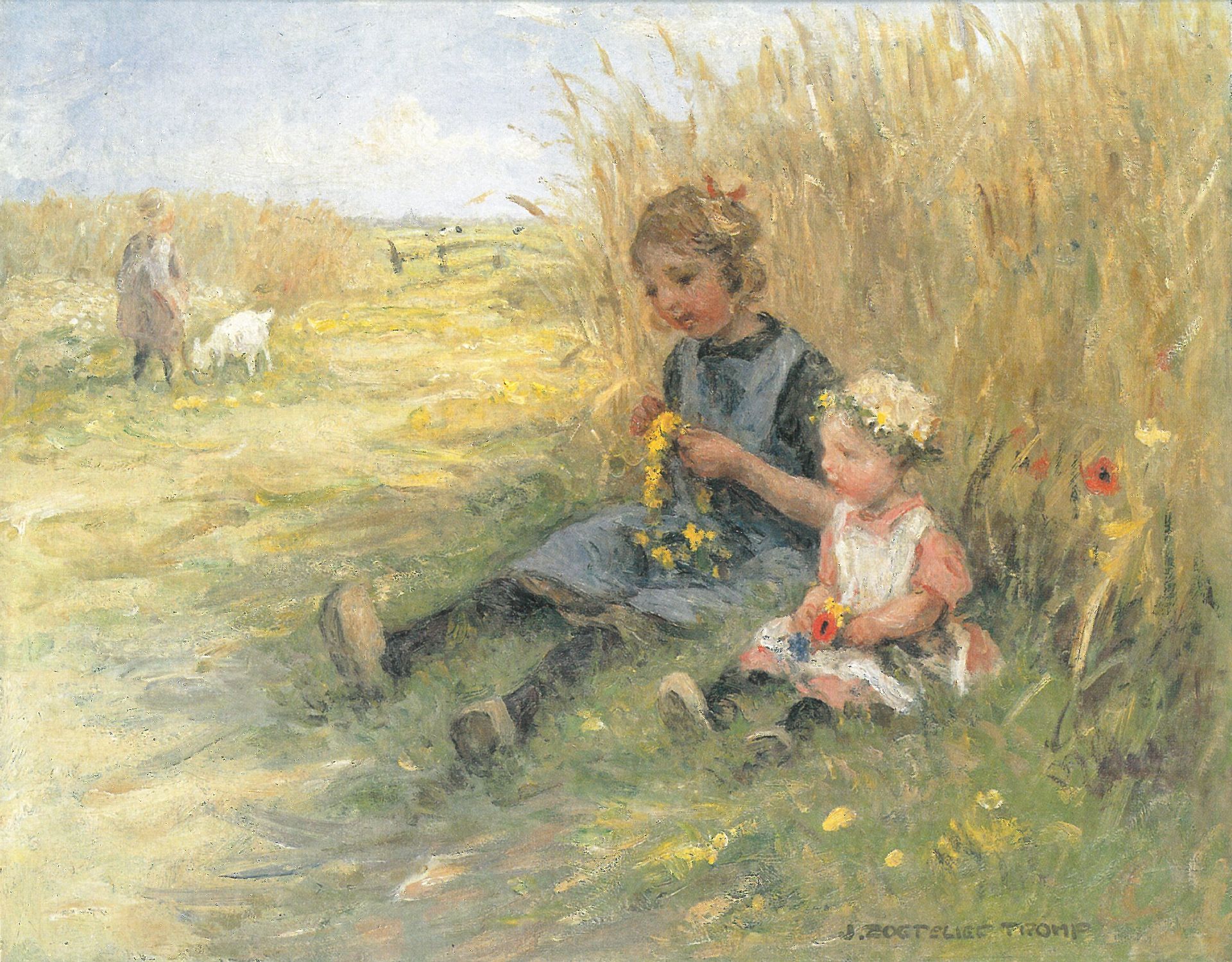 Jan Zoetelief Tromp kunstwerk • schilderij • voorheen te koop Bloemenkrans vlechten in het korenveld