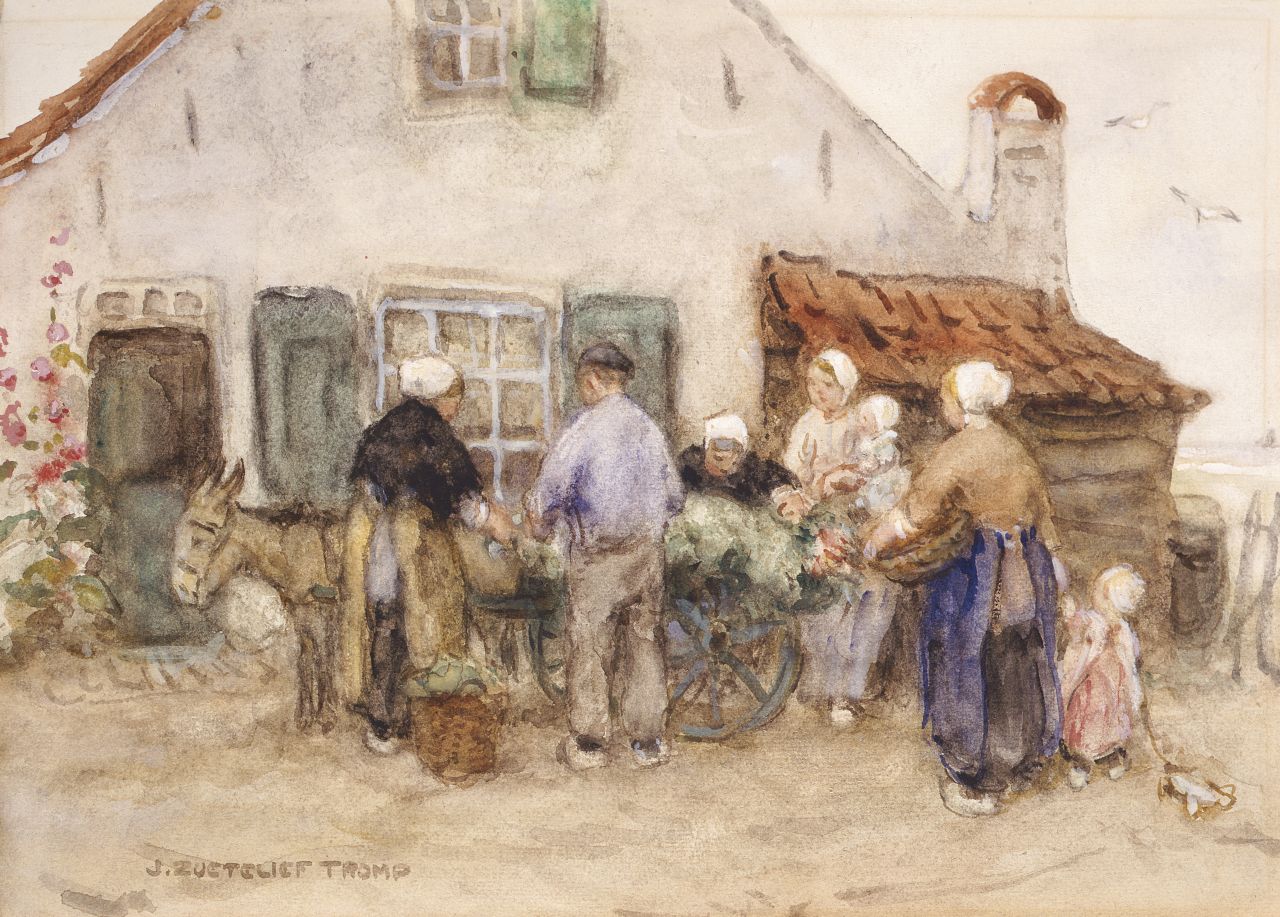 Blaricum en Katwijk waren de twee dorpen waar Jan Zoetelief Tromp het meeste schilderde. In Blaricum vond hij vanaf 1899 het boerenleven, Katwijk 'ontdekte' hij in 1905. Eerst brengt hij er alleen de zomers door met zijn gezin, vanaf 1914 woont hij er permanent. Hij schildert er het leven van de vissersbevolking, maar vooral voorstellingen met kinderen: spelend op het strand, geitjes hoedend of terugkerend uit de duinen. Deze taferelen zijn altijd idyllisch en stralen het familiegeluk uit dat hij vermoedelijk zelf ook kende. Omdat de schilder doof was en enigszins teruggetrokken, nam hij vaak zijn eigen vrouw en kinderen als model.