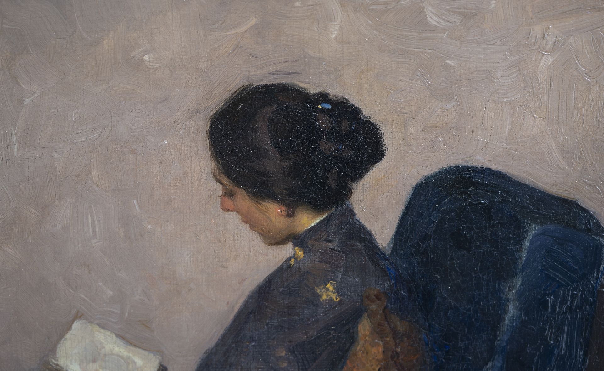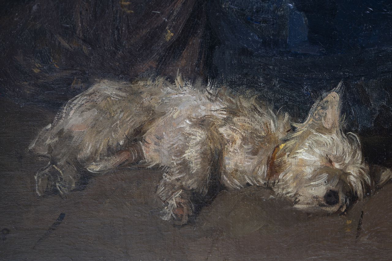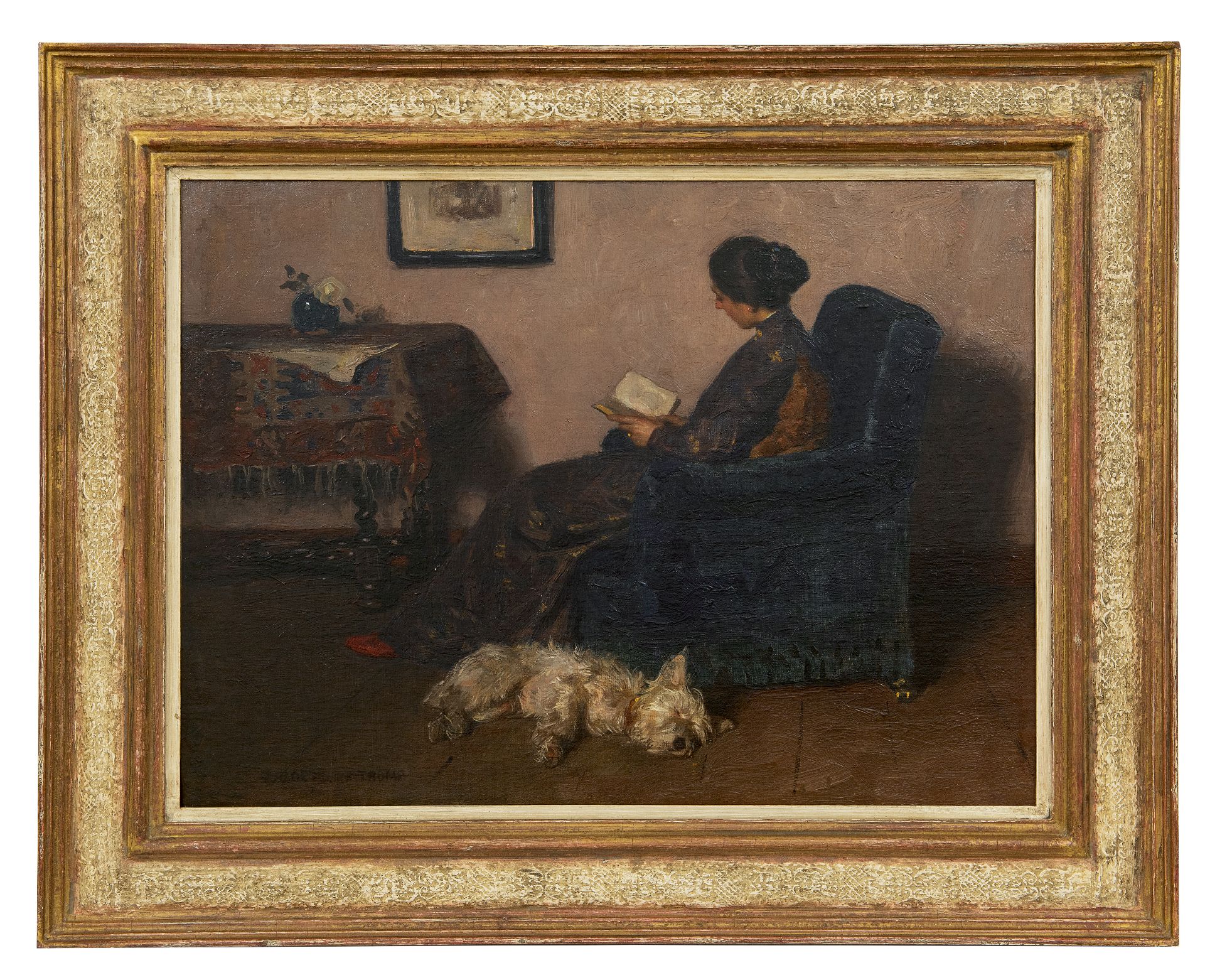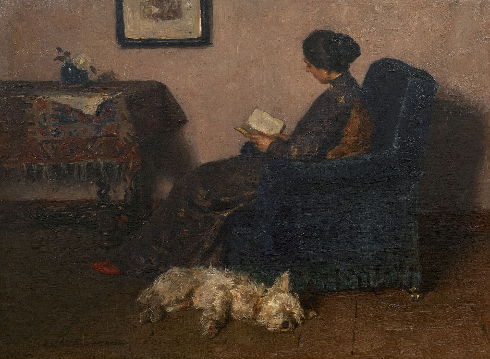 Jan Zoetelief Tromp kunstwerk • schilderij • voorheen te koop De vrouw van de schilder, lezend, met hun hond Billie