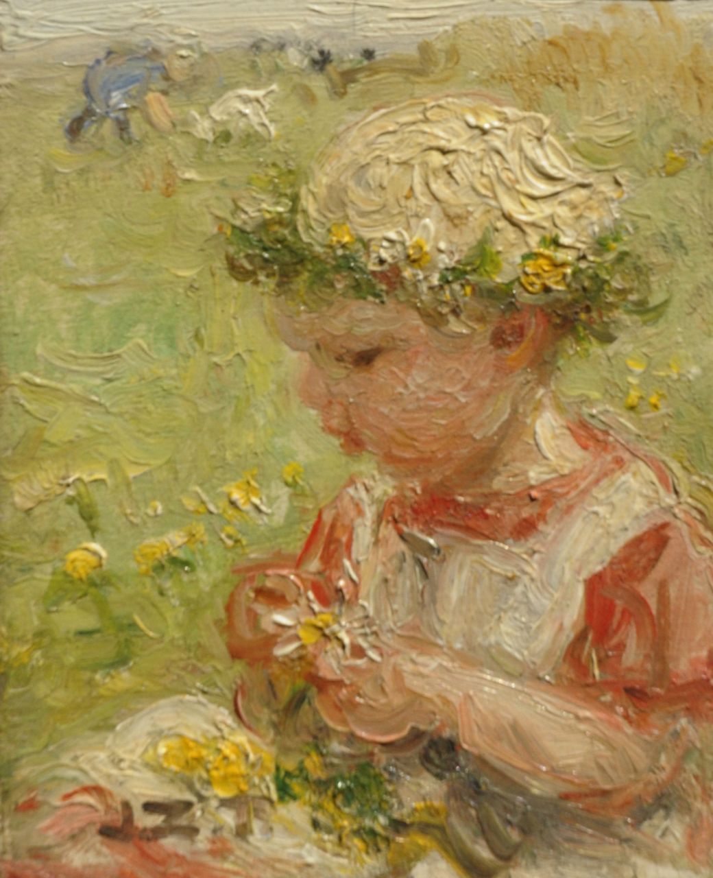 Jan Zoetelief Tromp kunstwerk • schilderij • voorheen te koop Meisje plukt bloemetjes
