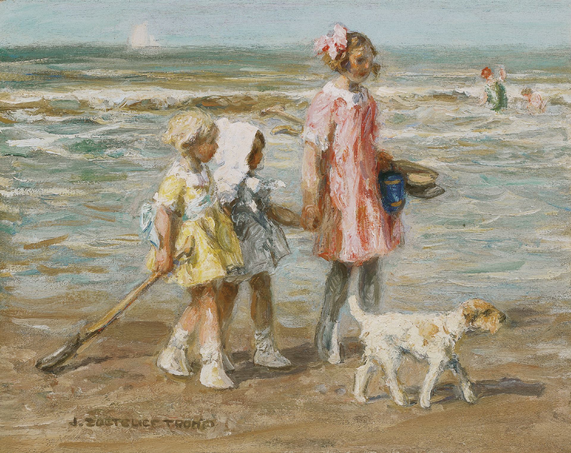 Jan Zoetelief Tromp kunstwerk • schilderij • voorheen te koop Meisjes op het strand in Katwijk