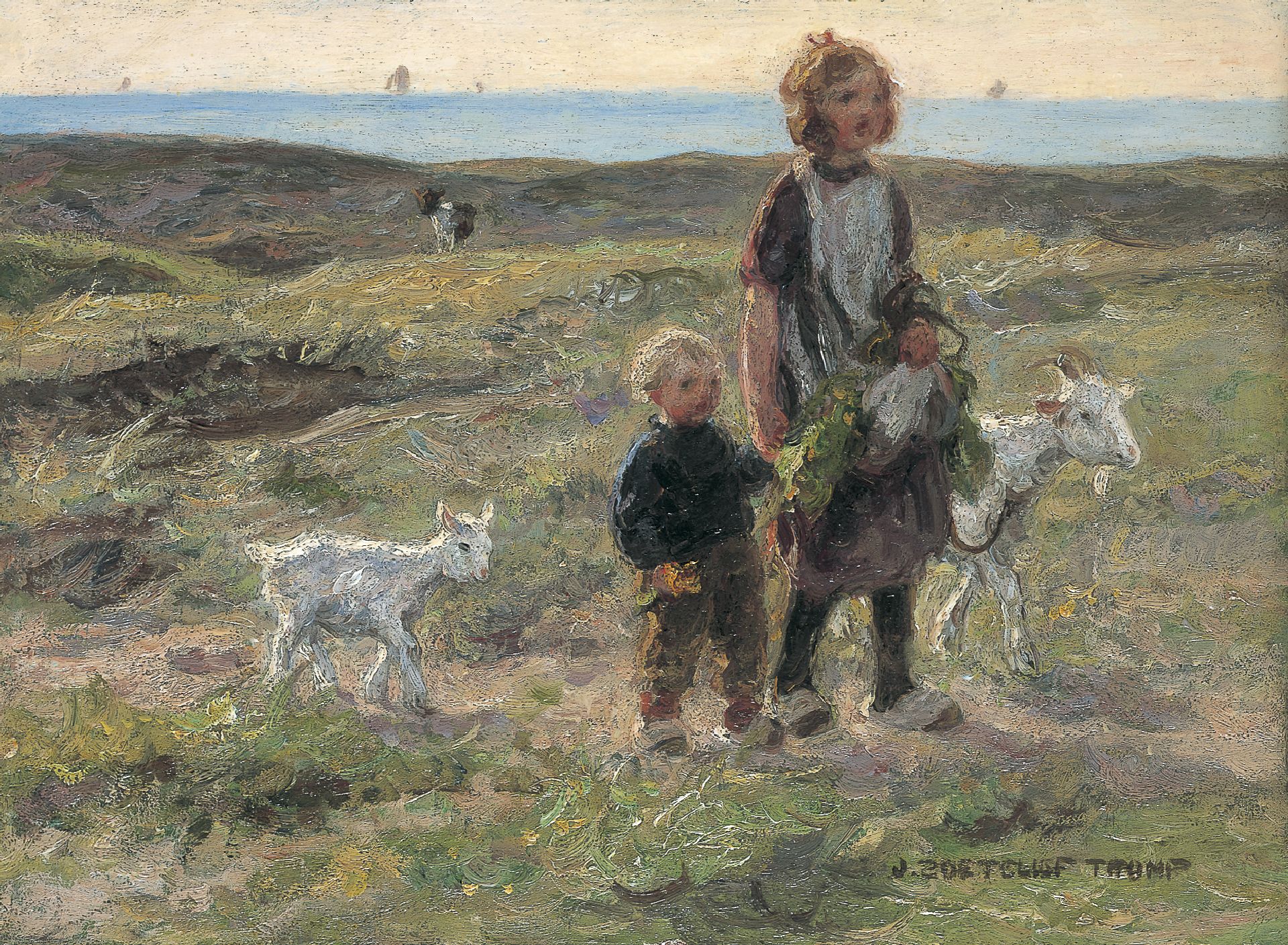 Jan Zoetelief Tromp kunstwerk • schilderij • voorheen te koop Met de geitjes huiswaarts