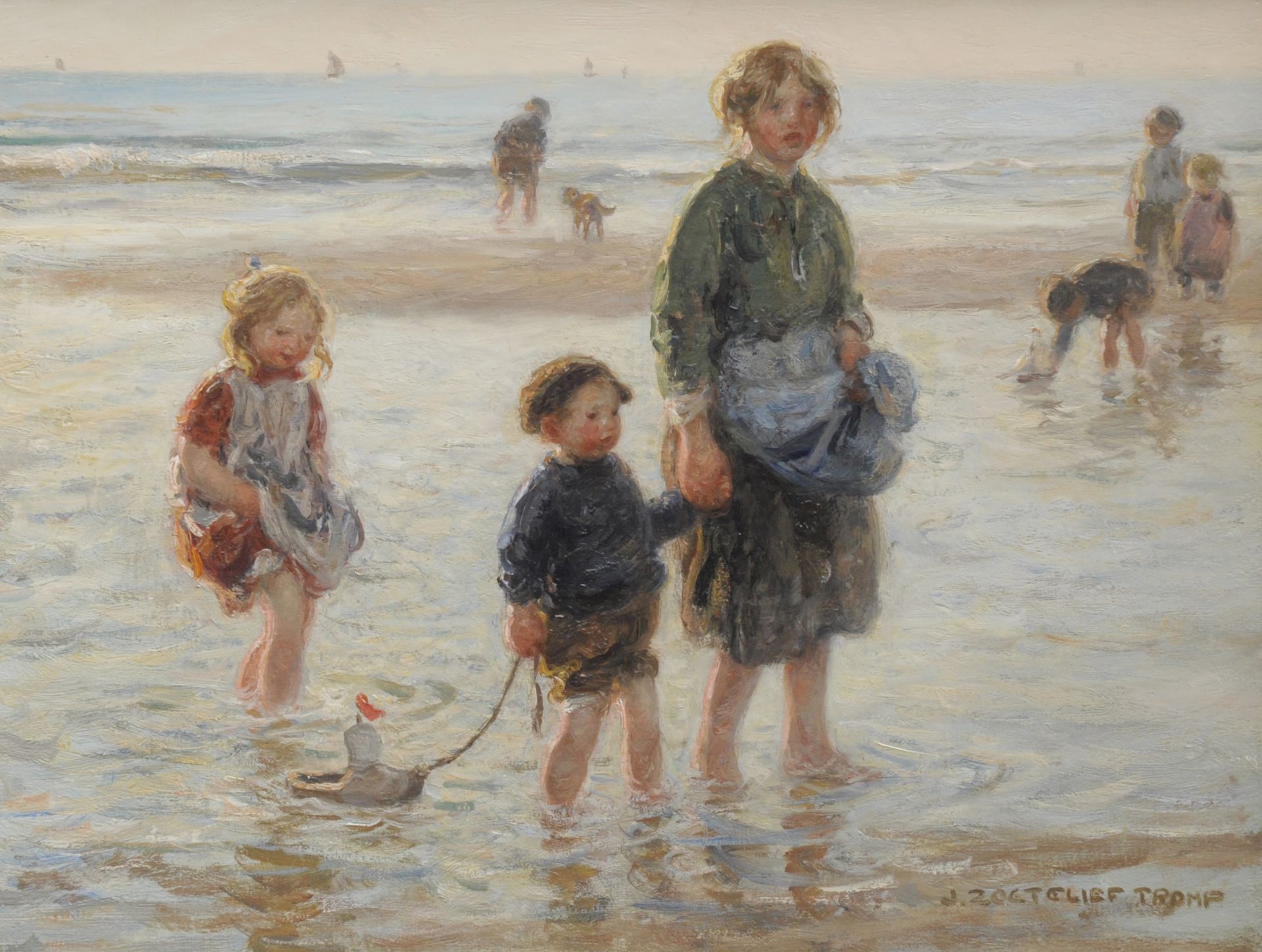 Blaricum en Katwijk waren de twee dorpen waar Jan Zoetelief Tromp het meeste schilderde. In Blaricum vond hij vanaf 1899 het boerenleven, Katwijk 'ontdekte' hij in 1905. Eerst brengt hij er alleen de zomers door met zijn gezin, vanaf 1914 woont hij er permanent. Hij schildert er het leven van de vissersbevolking, maar vooral voorstellingen met kinderen: spelend op het strand, geitjes hoedend of terugkerend uit de duinen. Deze taferelen zijn altijd idyllisch en stralen het familiegeluk uit dat hij vermoedelijk zelf ook kende. Omdat de schilder doof was en enigszins teruggetrokken, nam hij vaak zijn eigen vrouw en kinderen als model.