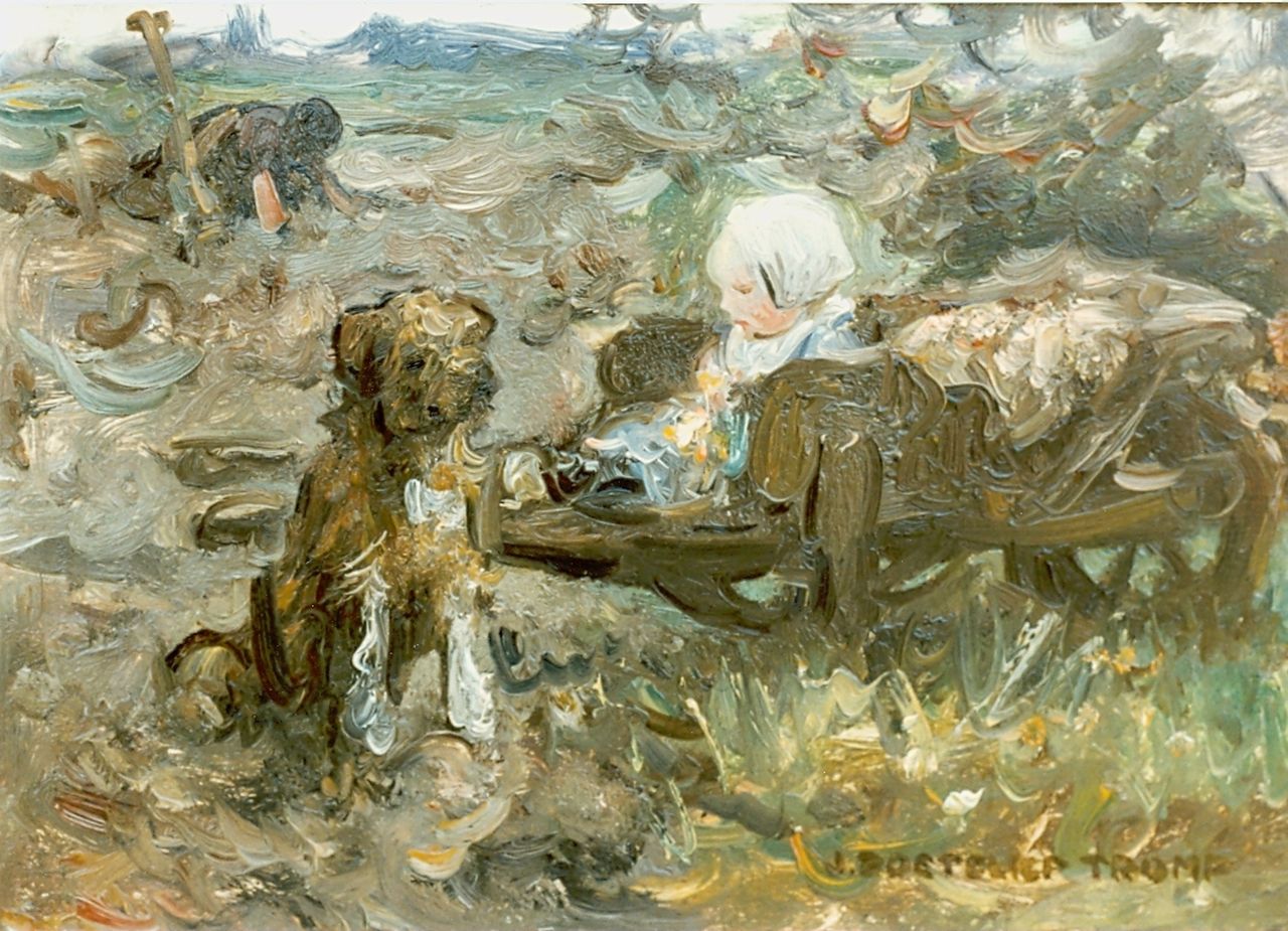 Blaricum en Katwijk waren de twee dorpen waar Jan Zoetelief Tromp het meeste schilderde. In Blaricum vond hij vanaf 1899 het boerenleven, Katwijk 'ontdekte' hij in 1905. Eerst brengt hij er alleen de zomers door met zijn gezin, vanaf 1914 woont hij er permanent. Hij schildert er het leven van de vissersbevolking, maar vooral voorstellingen met kinderen: spelend op het strand, geitjes hoedend of terugkerend uit de duinen. Deze taferelen zijn altijd idyllisch en stralen het familiegeluk uit dat hij vermoedelijk zelf ook kende. Omdat de schilder doof was en enigszins teruggetrokken, nam hij vaak zijn eigen vrouw en kinderen als model.