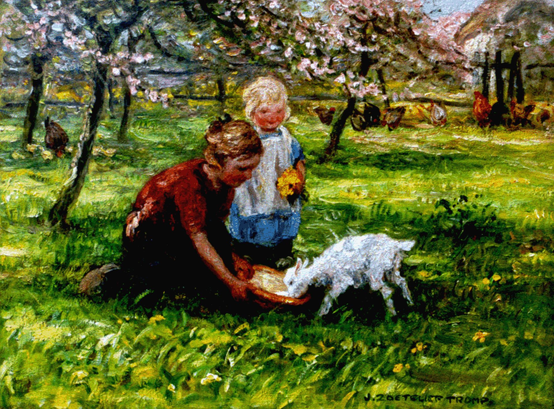 Jan Zoetelief Tromp kunstwerk • schilderij • voorheen te koop Voorjaar op de boerderij in Blaricum