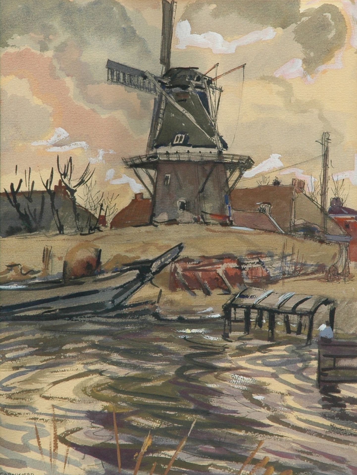 Jannes de Vries kunstwerk • aquarel • tekening • voorheen te koop Molen in Garnwerd