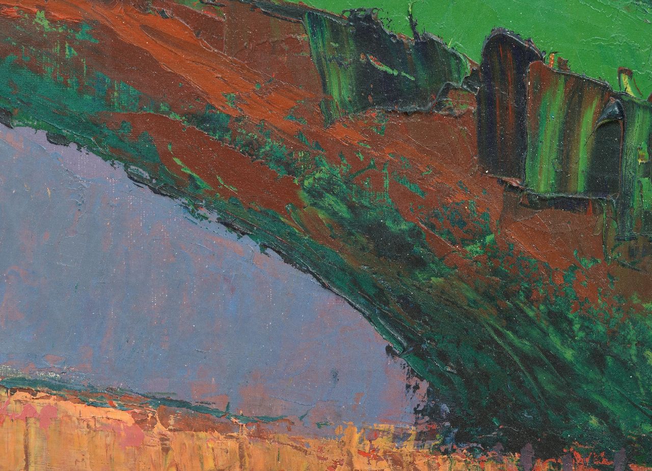 Twee voor de prijs van één: ook de achterkant is beschilderd. Voor ‘Gezicht op de Waal’ gebruikte De Vries vooral het paletmes.