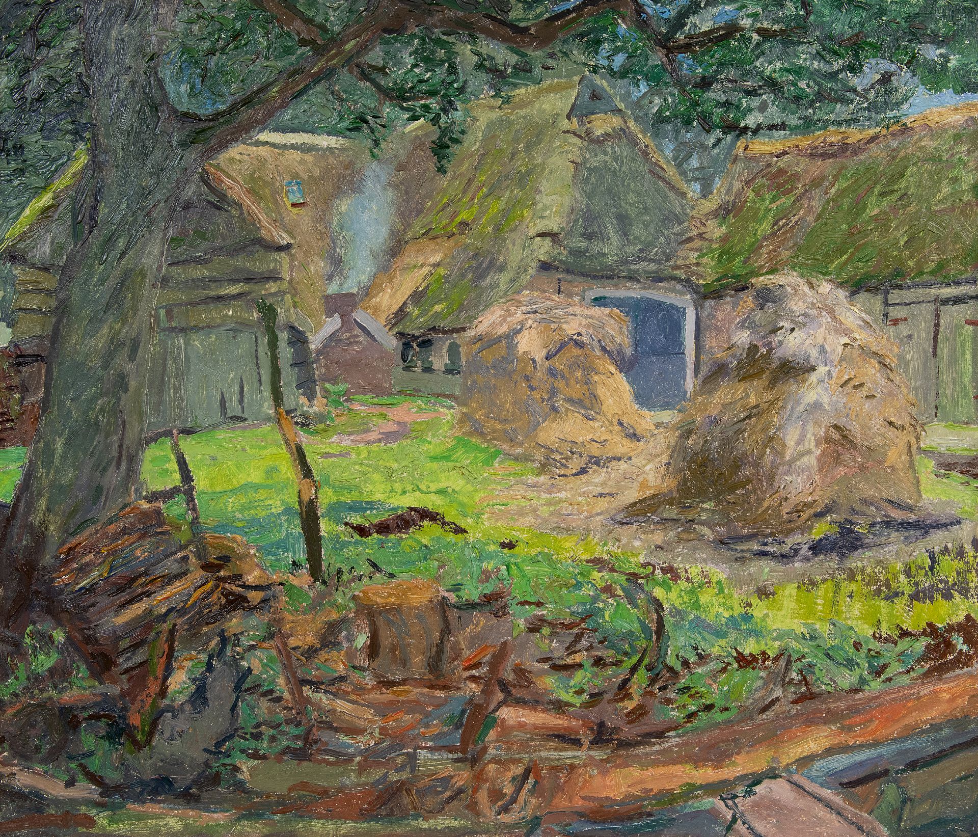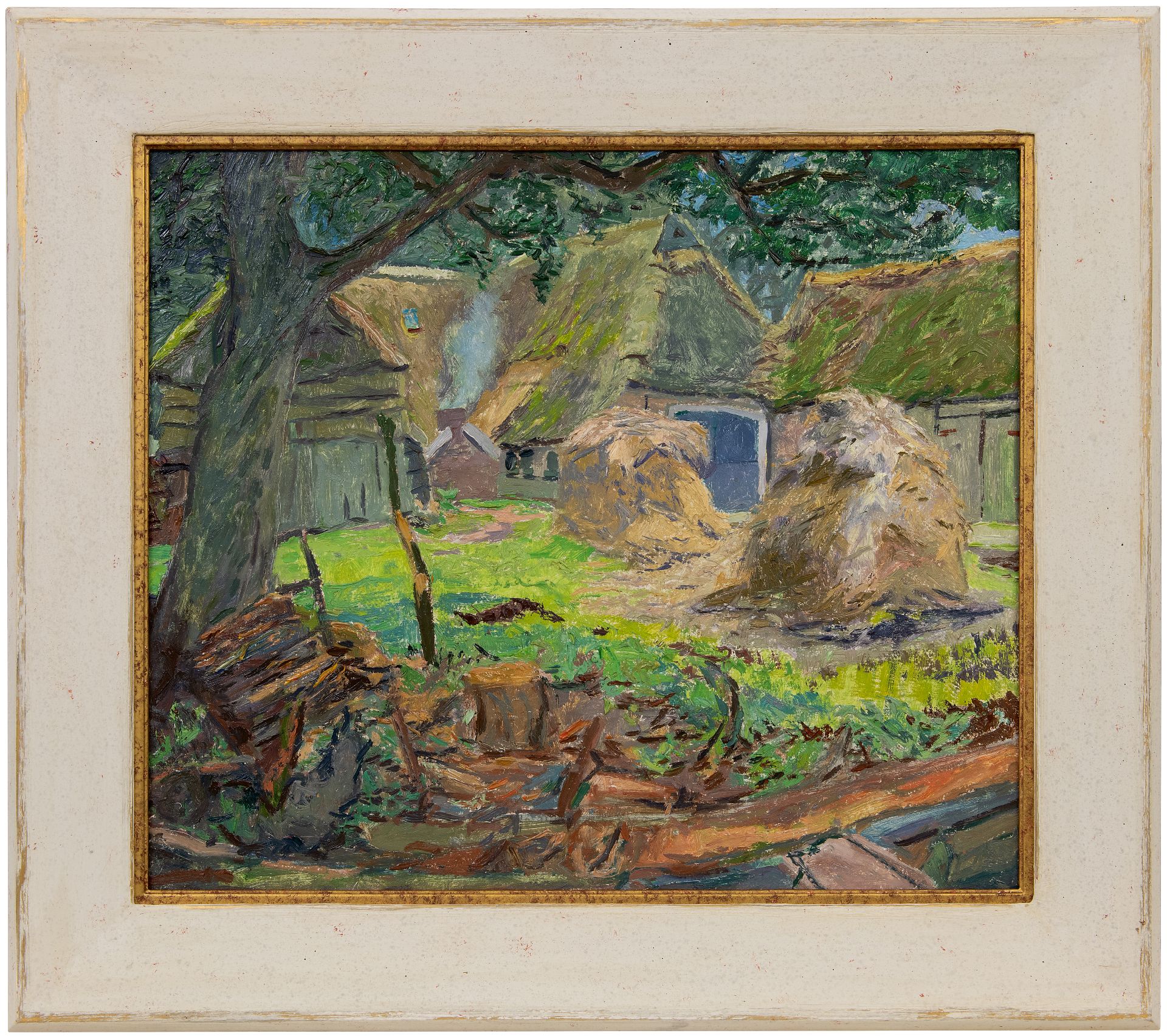 Jannes de Vries kunstwerk • schilderij • voorheen te koop Boerenerf met hooischelven