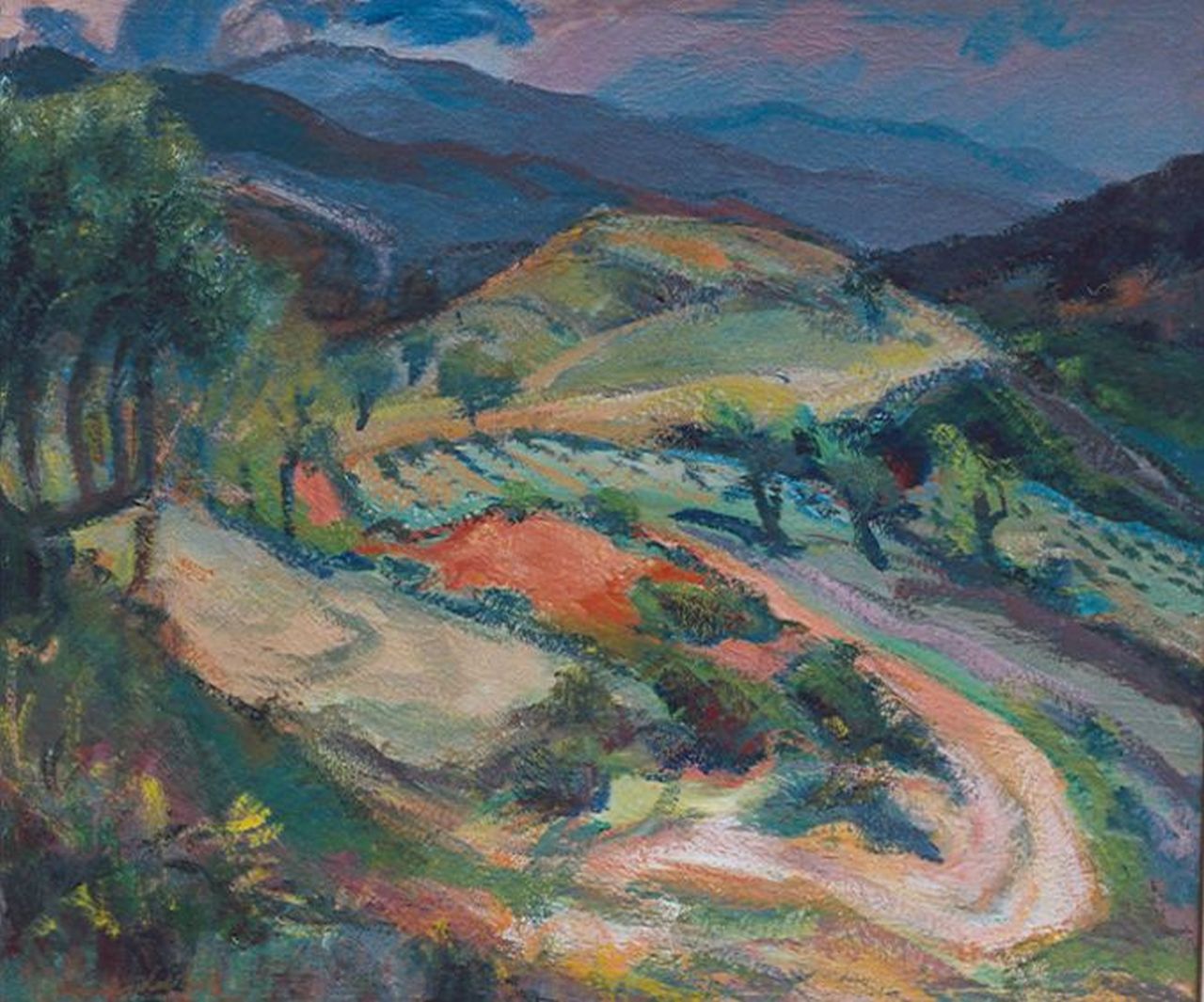 Jannes de Vries kunstwerk • schilderij • voorheen te koop Frans heuvellandschap