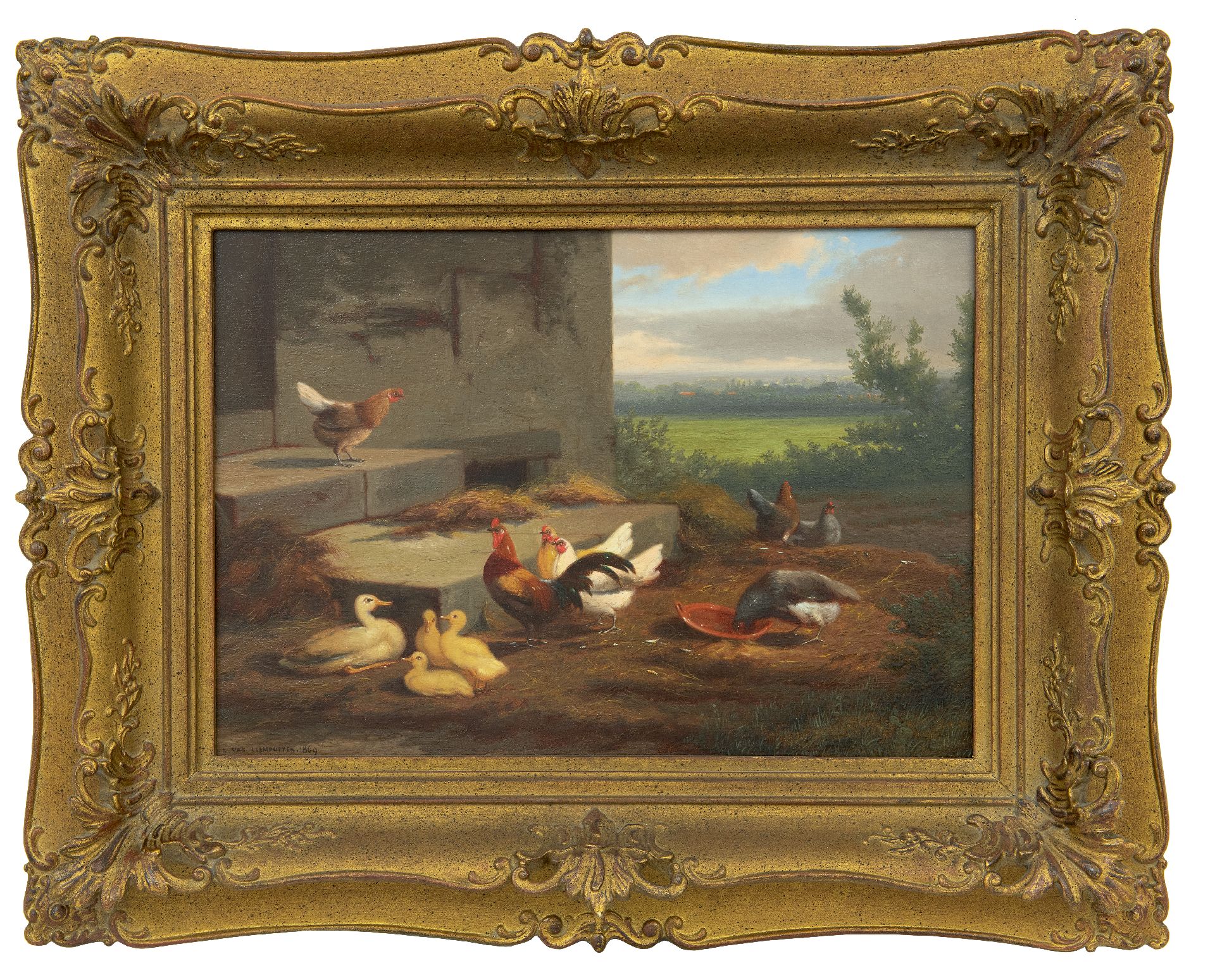 Jean-Baptiste Leopold van Leemputten kunstwerk • schilderij • te koop Kippen en eenden op een boerenerf