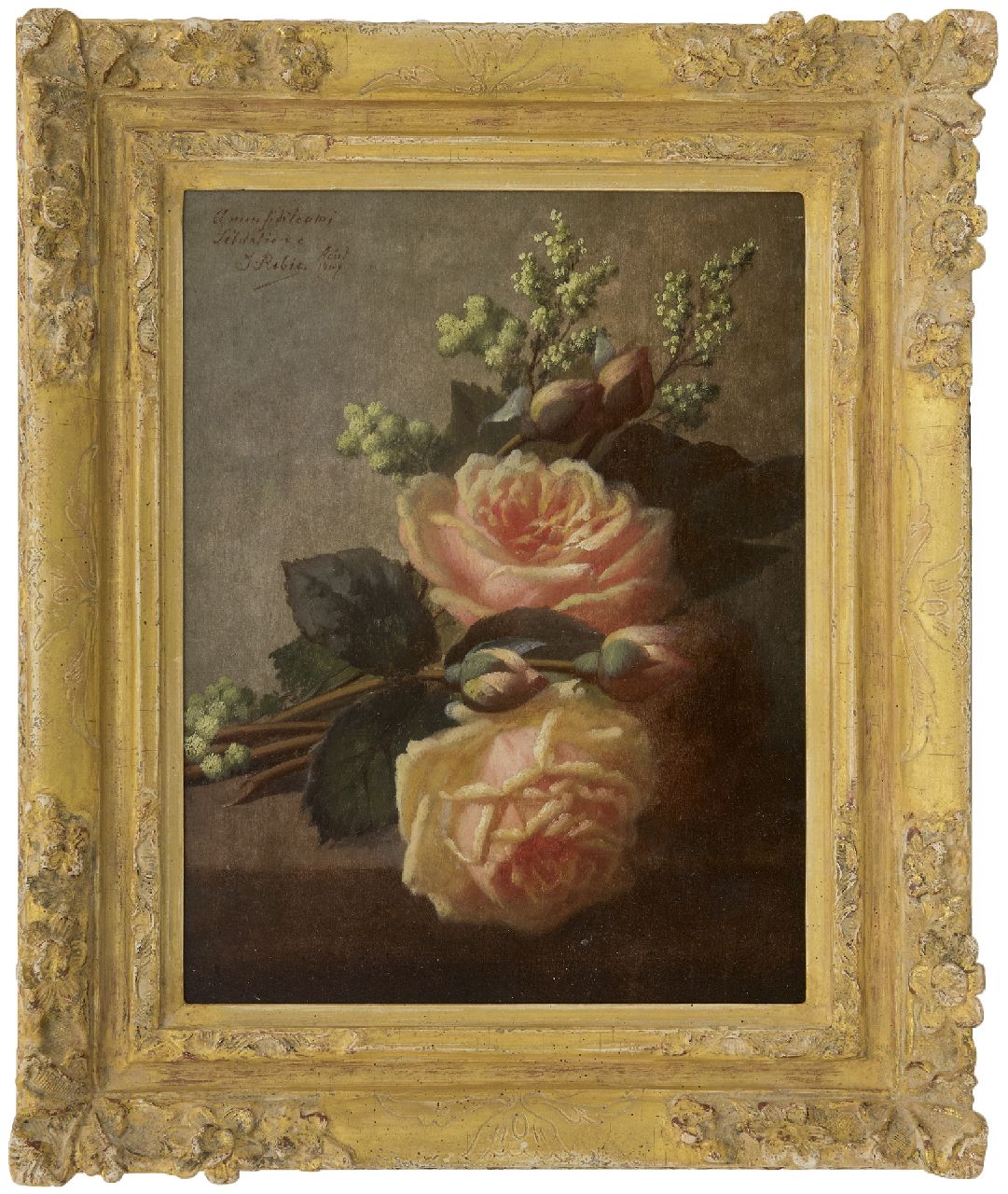 Jean-Baptiste Robie kunstwerk • schilderij • te koop Rozen op een plint