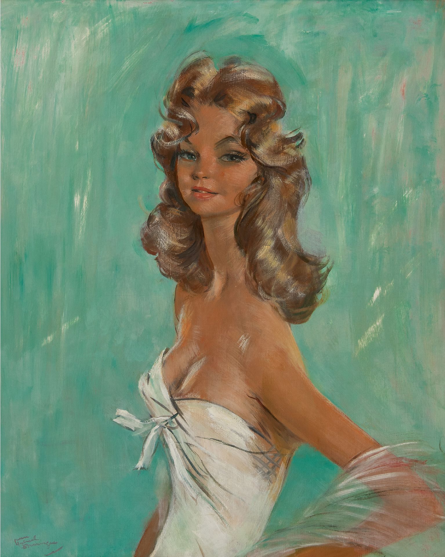 Jean-Gabriel Domergue kunstwerk • schilderij • te koop Blond meisje in witte jurk