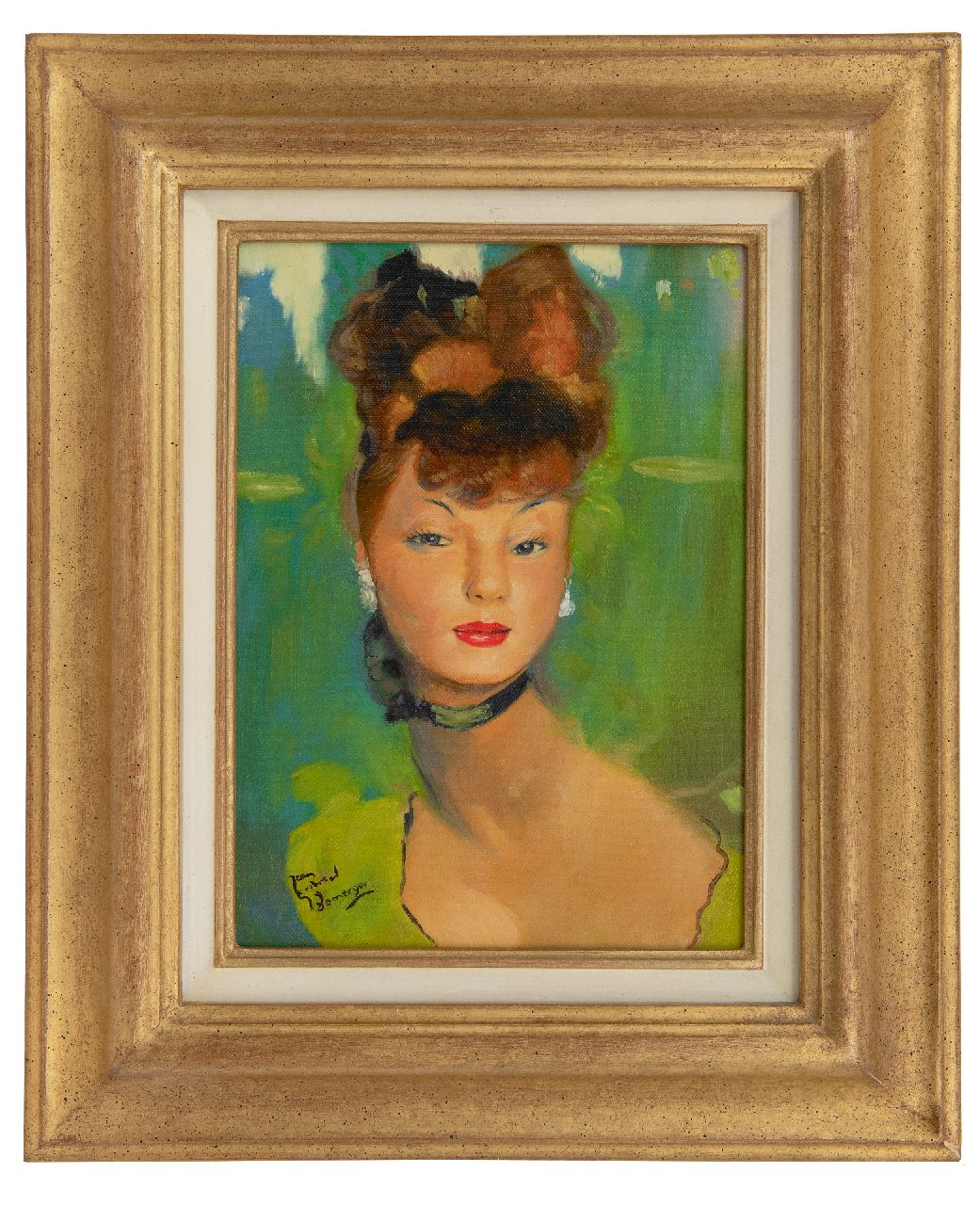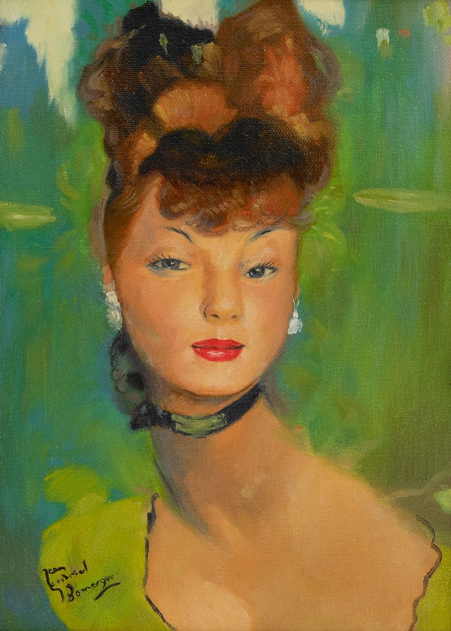 Jean-Gabriel Domergue kunstwerk • schilderij • te koop Jonge vrouw gekleed in groen