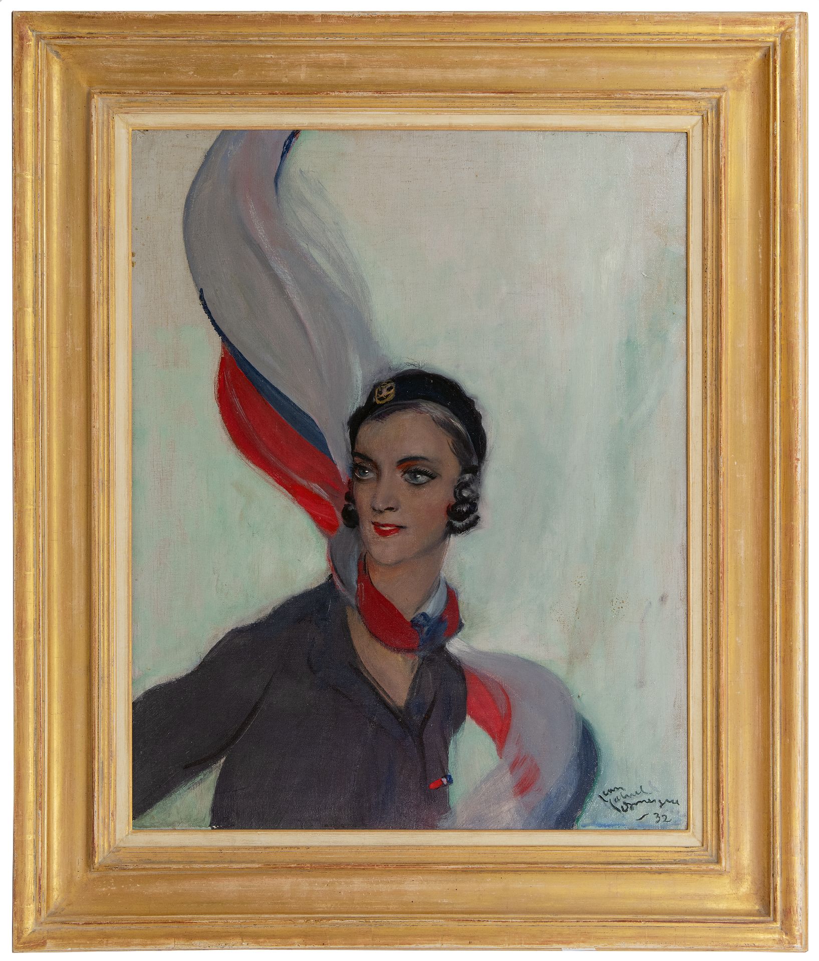 Jean-Gabriel Domergue kunstwerk • schilderij • te koop Jonge vrouw met gekleurde sjaal