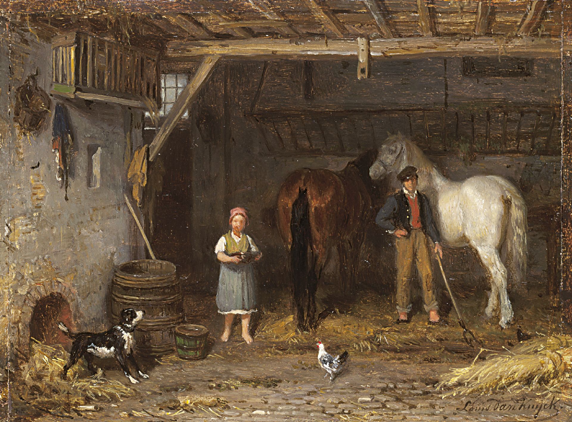 Jean Louis van Kuyck kunstwerk • schilderij • voorheen te koop Levendig stalinterieur