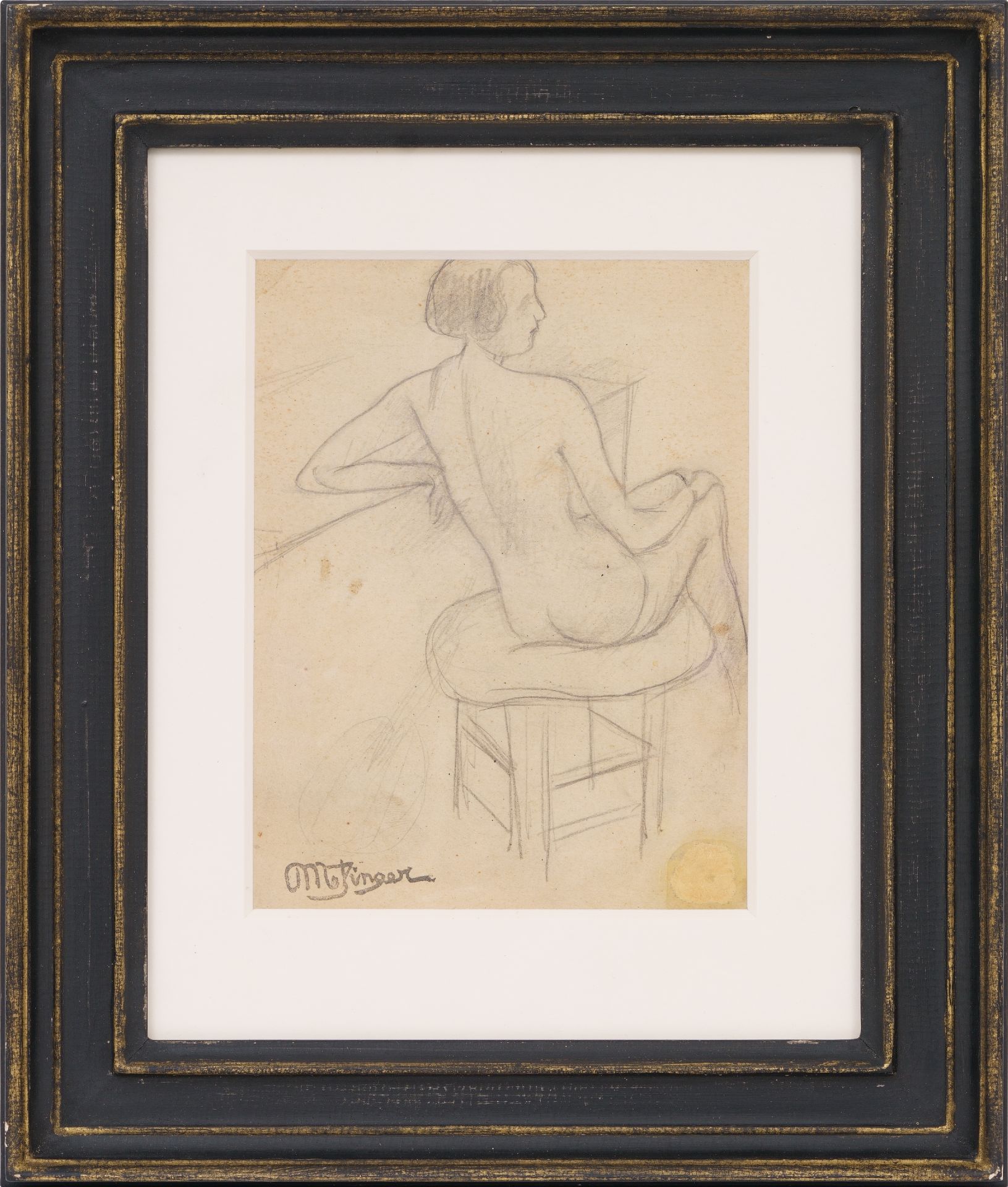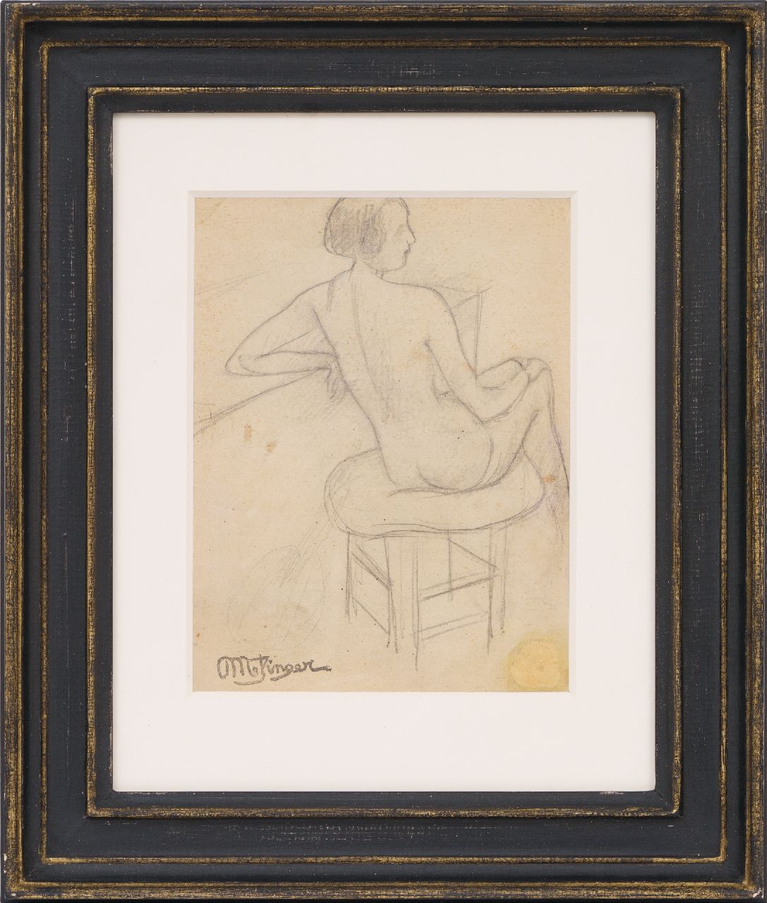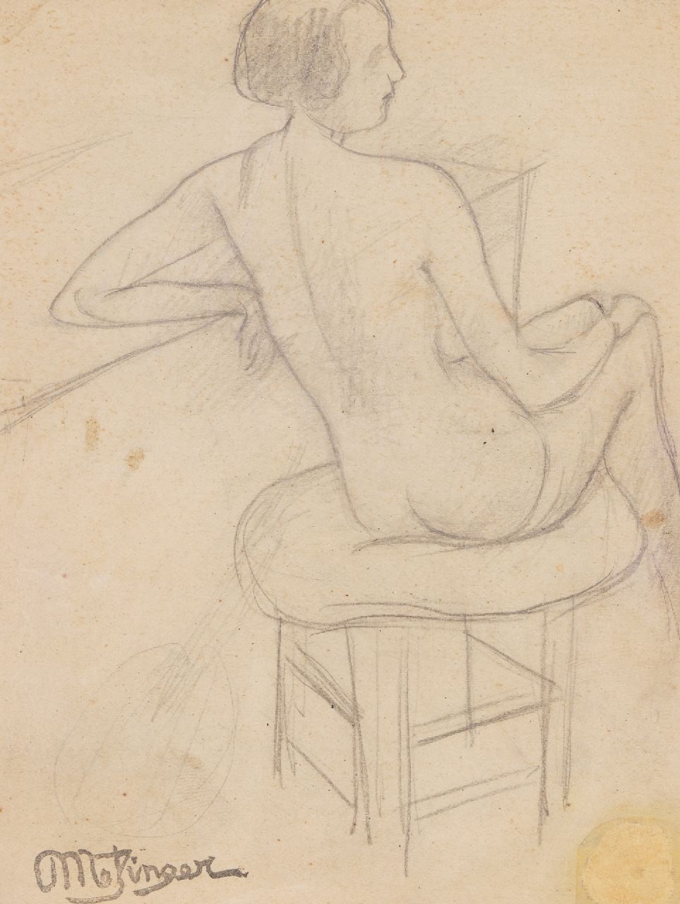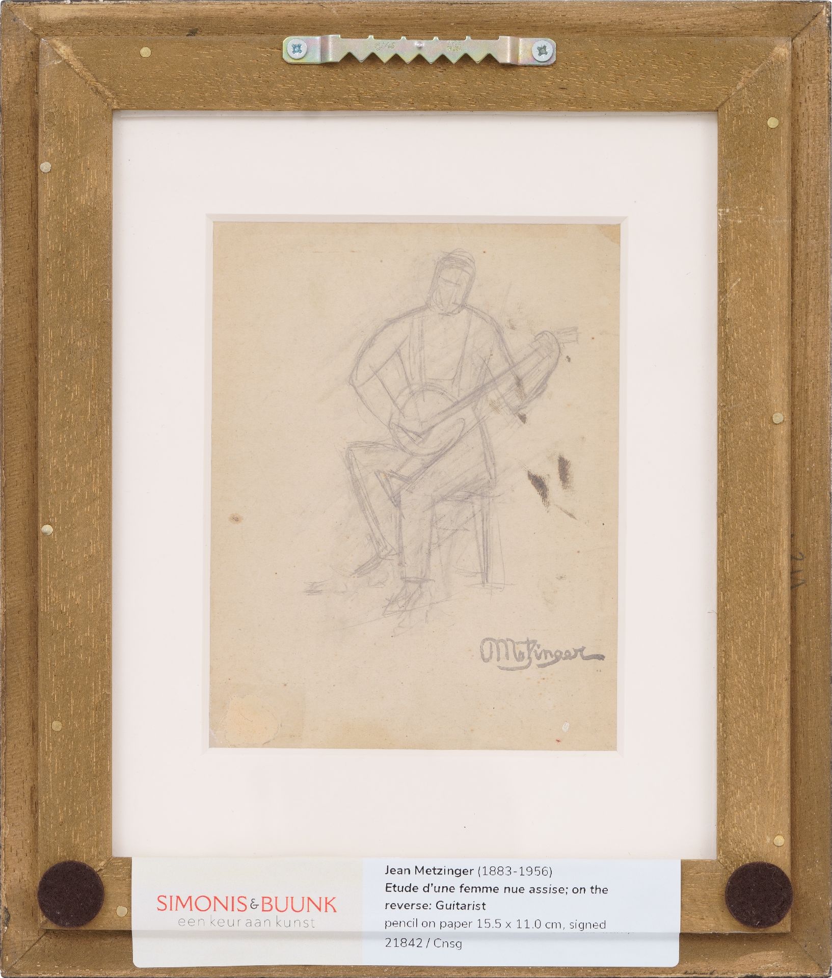 Jean Metzinger kunstwerk • aquarel • tekening • voorheen te koop Etude d'une femme nue assise; verso: Gitarist