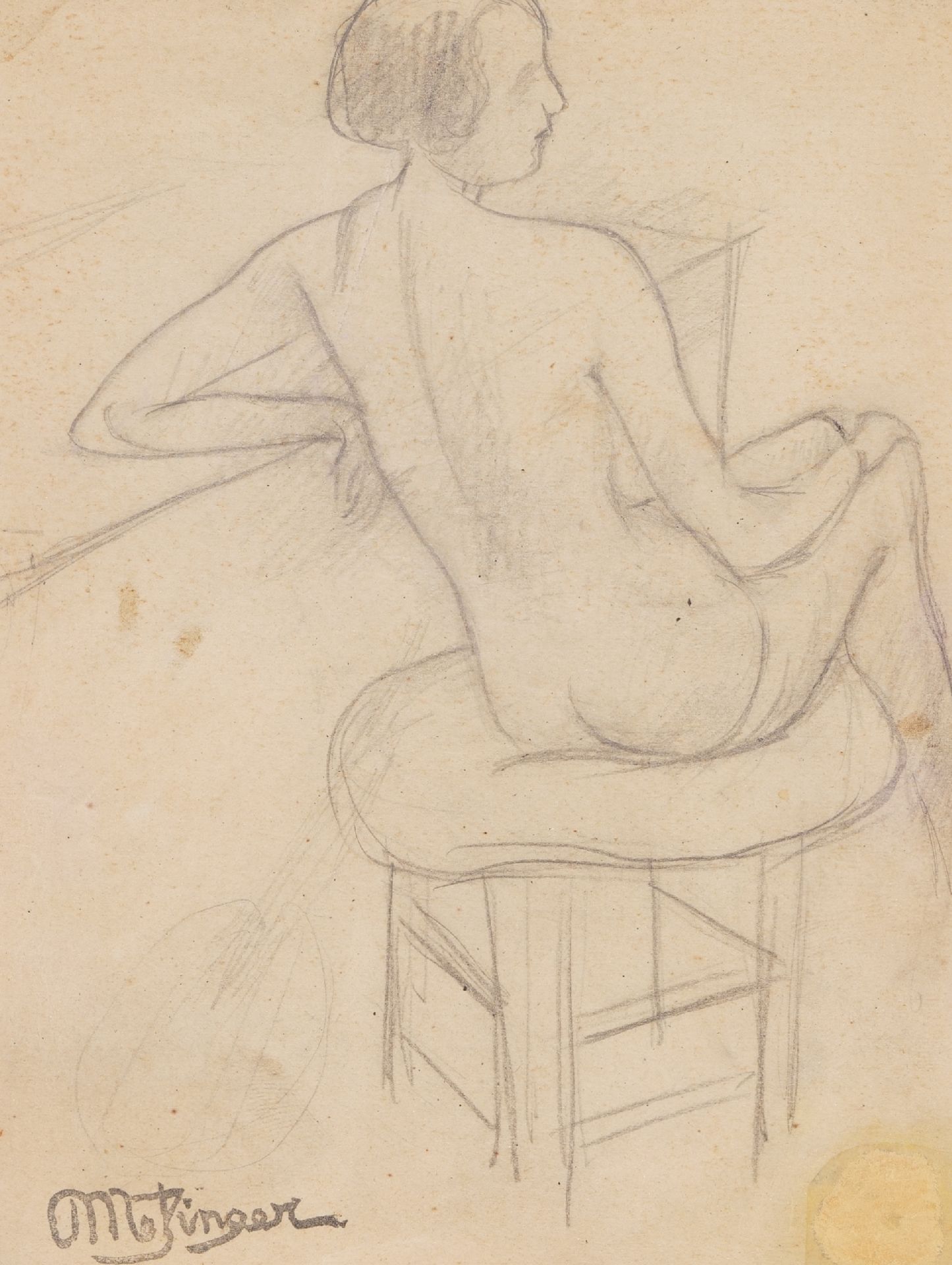 potlood op papier 15,5 x 11,0 cm, gesigneerd linksonder en verso met kunstenaarsstempel