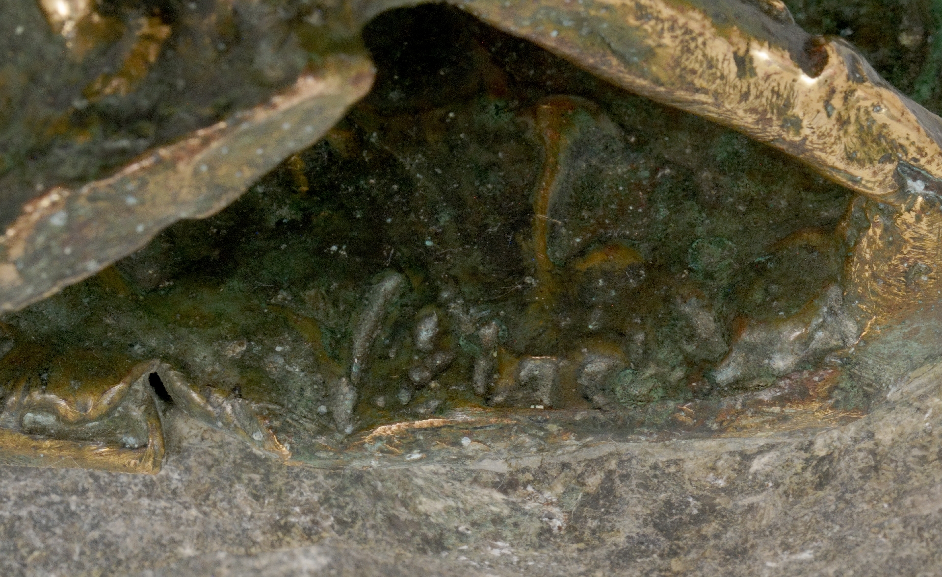 brons 18,8 x 15,1 cm, gesigneerd op de basis