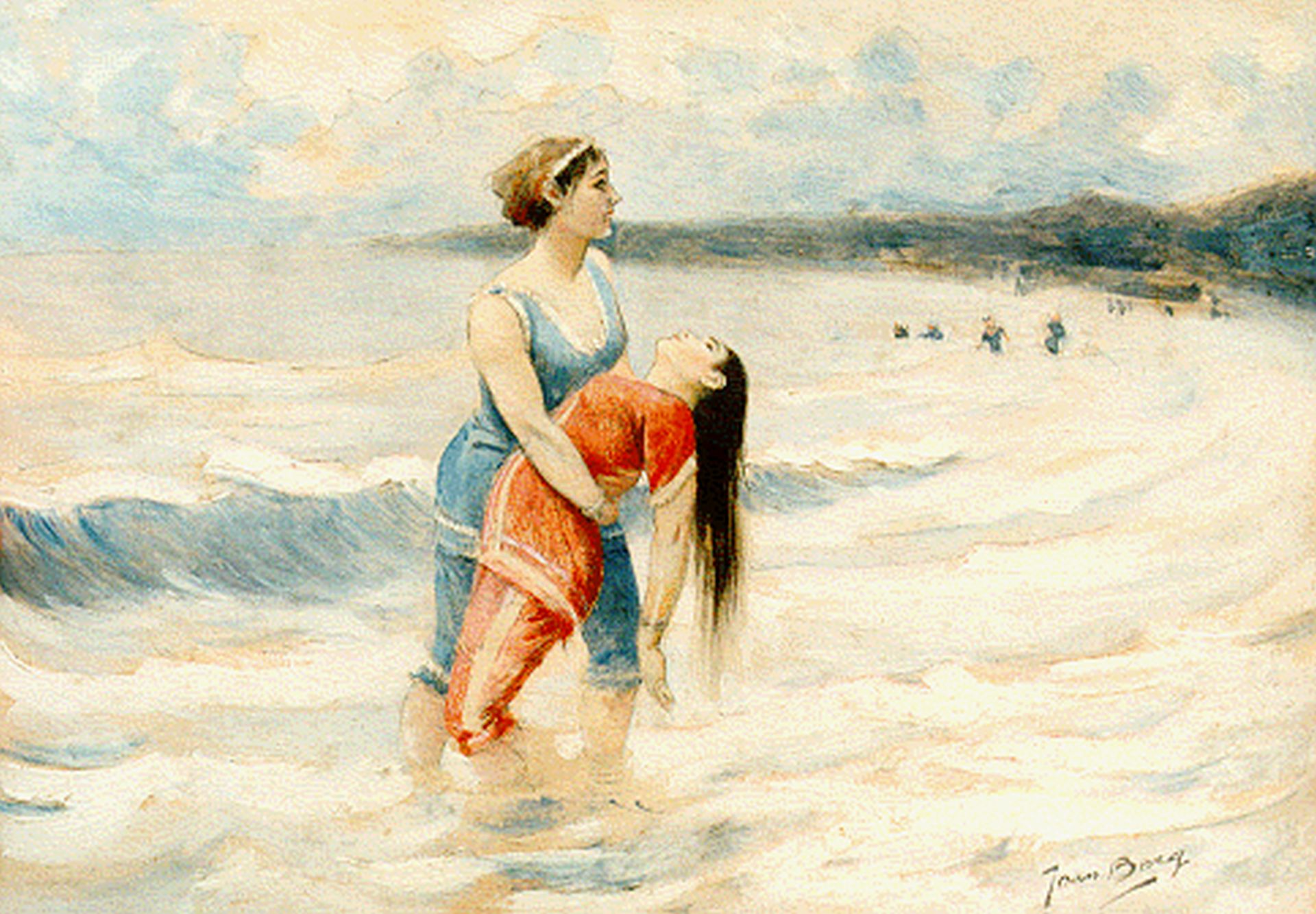Joan Berg kunstwerk • schilderij • voorheen te koop Opvissen van de drenkeling