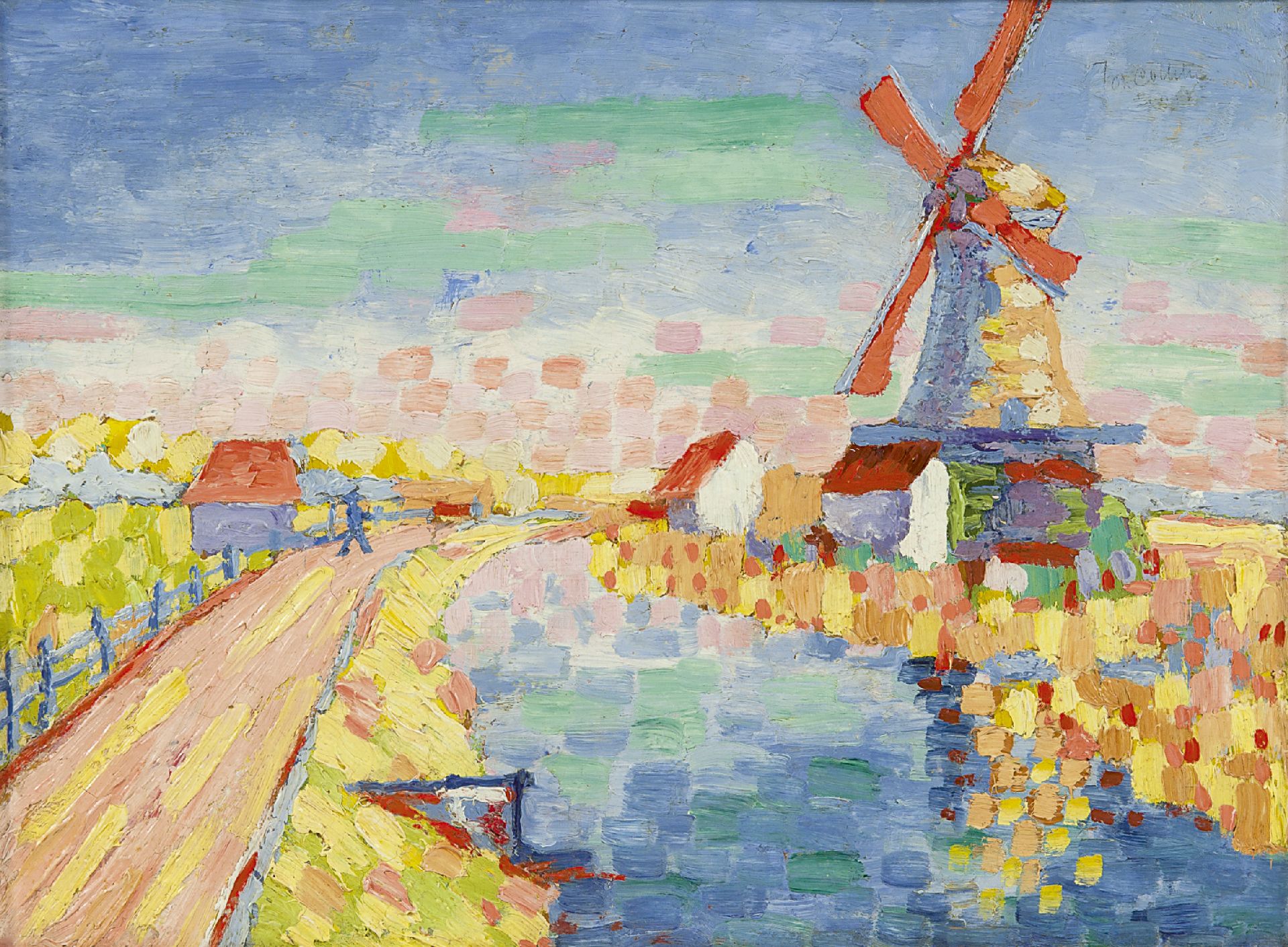 Joan Collette kunstwerk • schilderij • voorheen te koop Molen bij het water