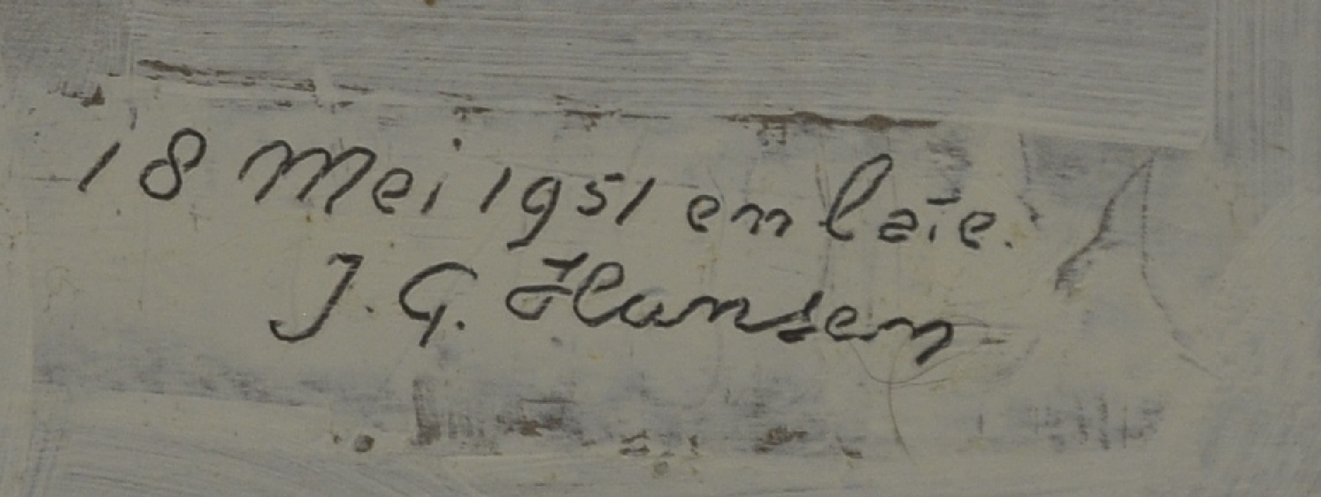 Job Hansen is een van de meest fascinerende schilders van De Groninger Ploeg. In 1923 werd hij als architect lid van deze kunstenaarsvereniging en het was Jan Altink die hem vervolgens aanzette tot schilderen. Als autodidact ontwikkelde Hansen daarin een geheel eigen beeldtaal, gebaseerd op een onconventionele manier van omgaan met verf en drager. Hij schilderde bij voorkeur op triplex, dat hij voorzag van een witte grondtoon. Daarop bracht hij de verf aan in verdunde vorm, waarbij hij naast een brede kwast ook zijn vingertoppen of handpalmen gebruikte. De witte ondergrond was voor hem een belangrijk beeldmiddel. Het representeerde voor hem licht en ruimte, waaruit zijn voorstellingen soms nauwelijks herkenbaar opdoemen. Hansen schilderde voornamelijk bloemstillevens en landschappen.
