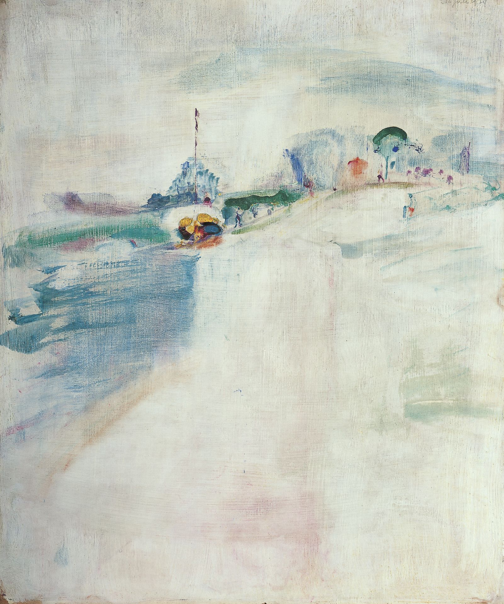 benzinerel op triplex 60,6 x 50,3 cm, gesigneerd verso en gedateerd 12 juli 1934